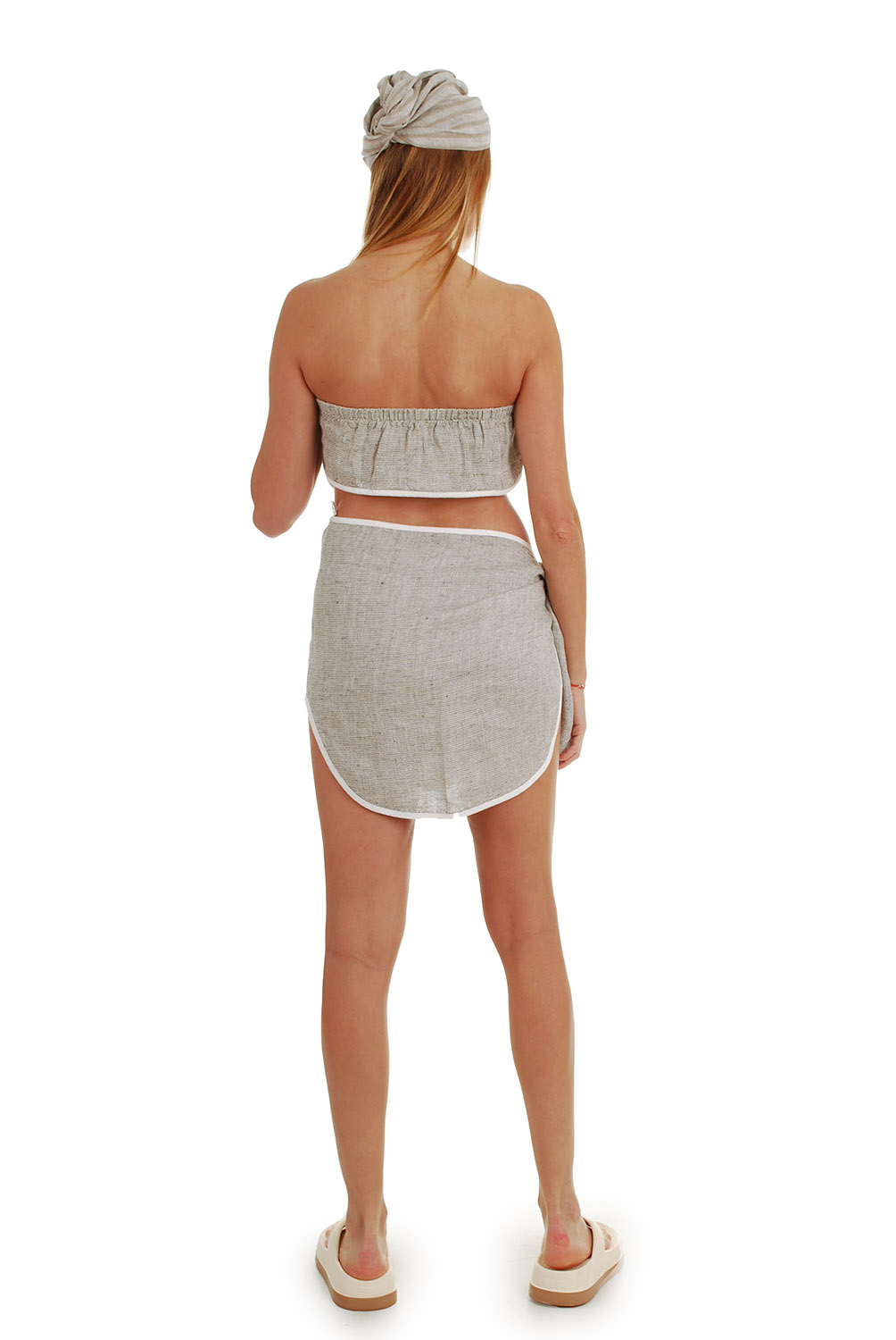 Lengvas, lininis, dviejų dalių kostiumėlis pirčiai