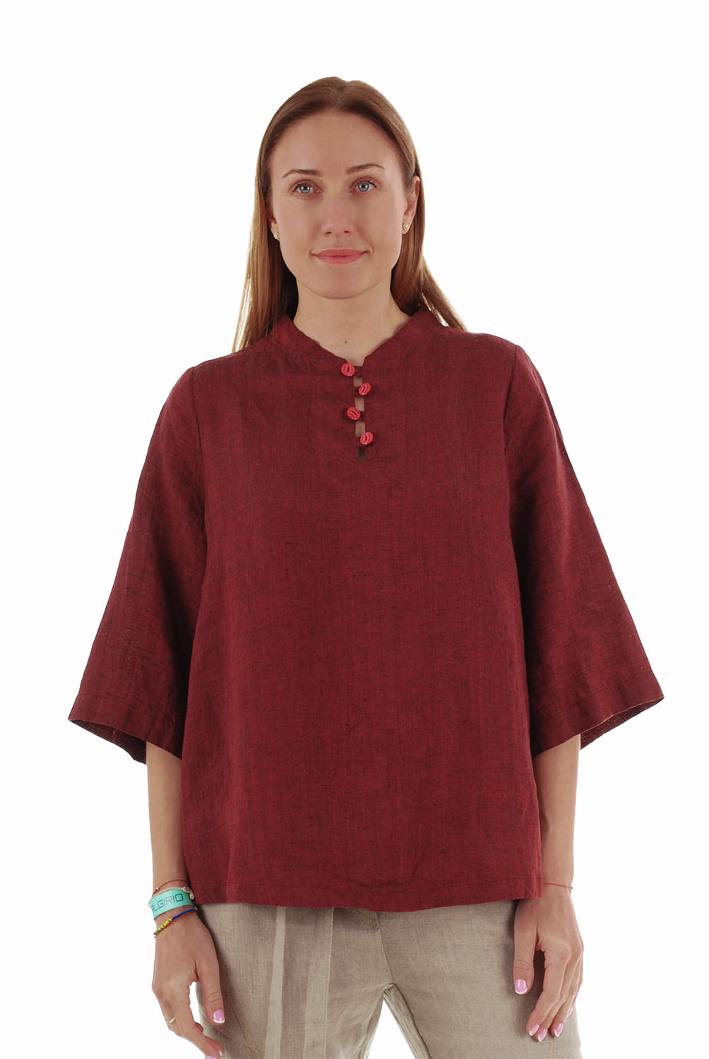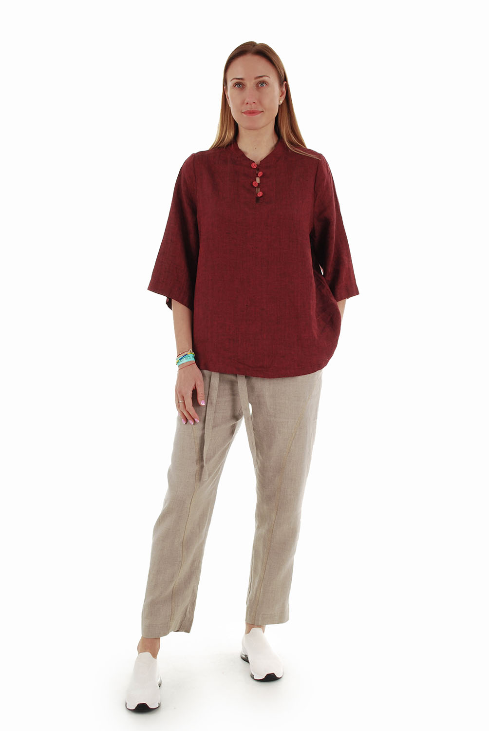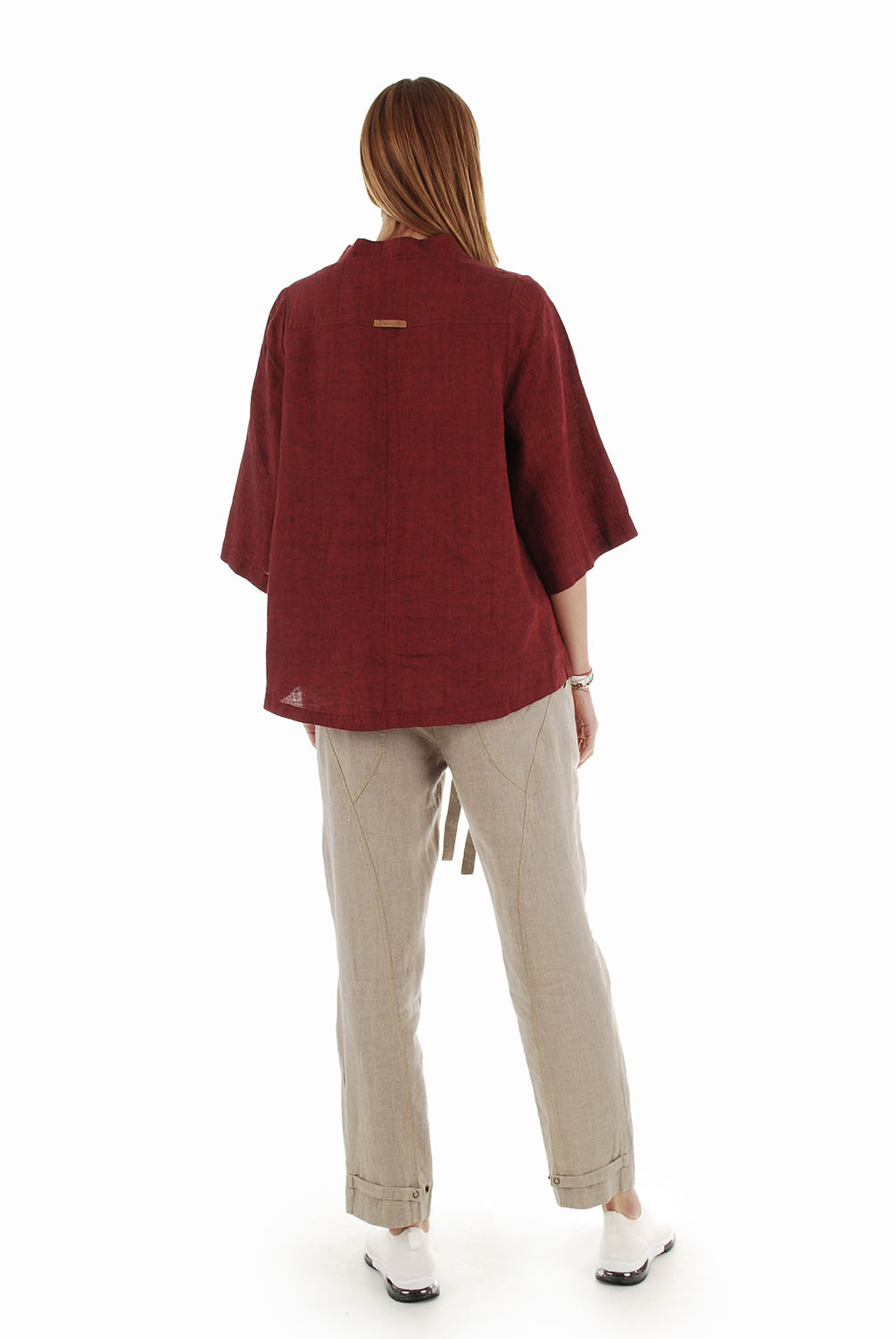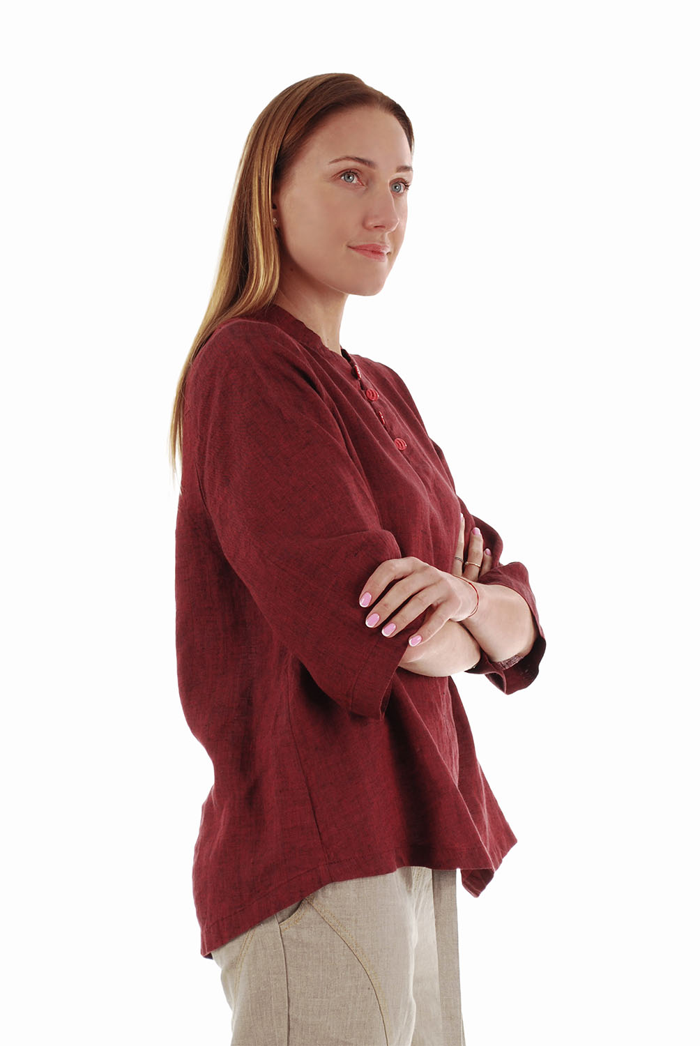 Lininė palaidinė, platėjanti į apačią. Susegama sagutėmis priekyje, po kaklu. Plačios, trijų ketvirčių ilgio rankovės nevaržo judesių, suteikia laisvumo jausmą.