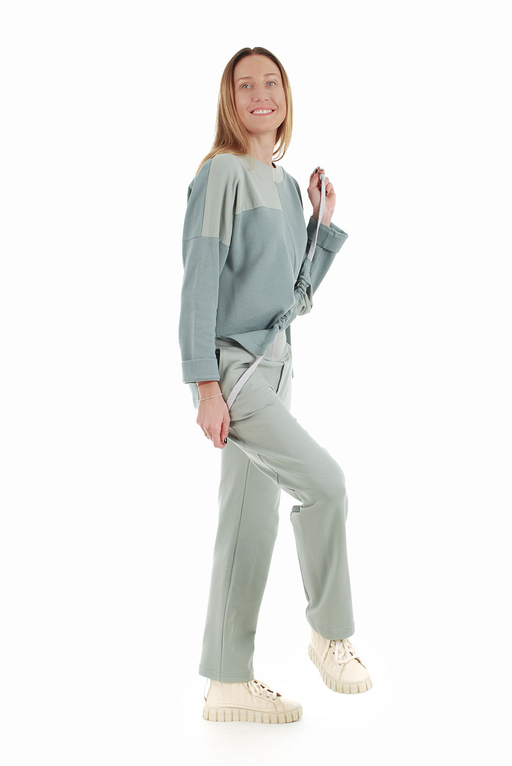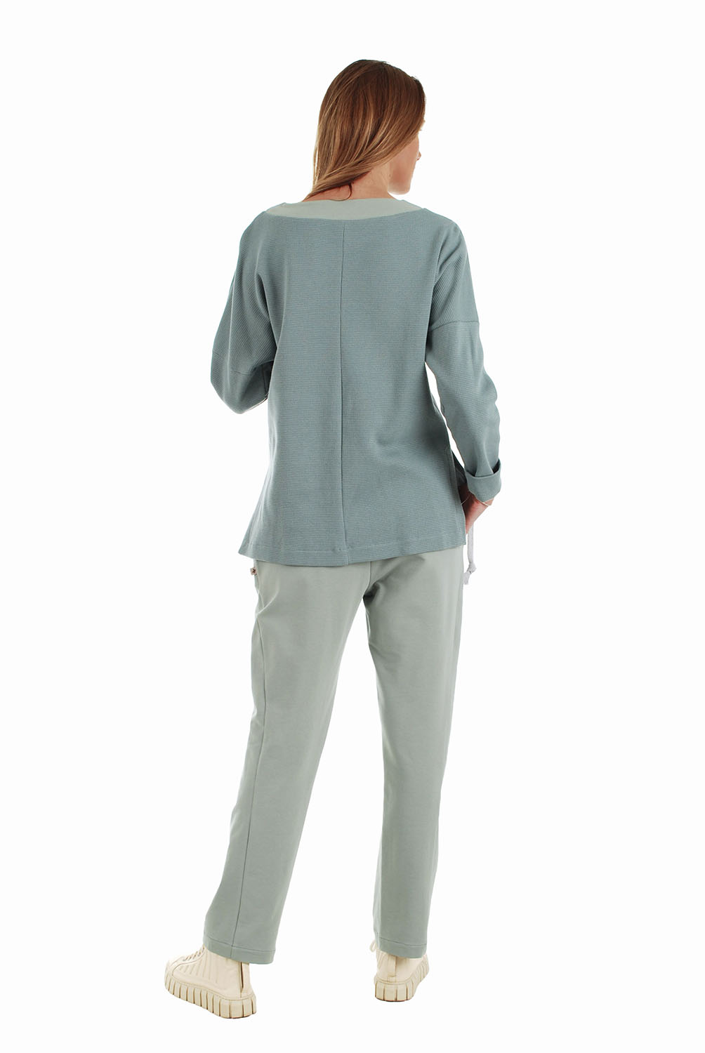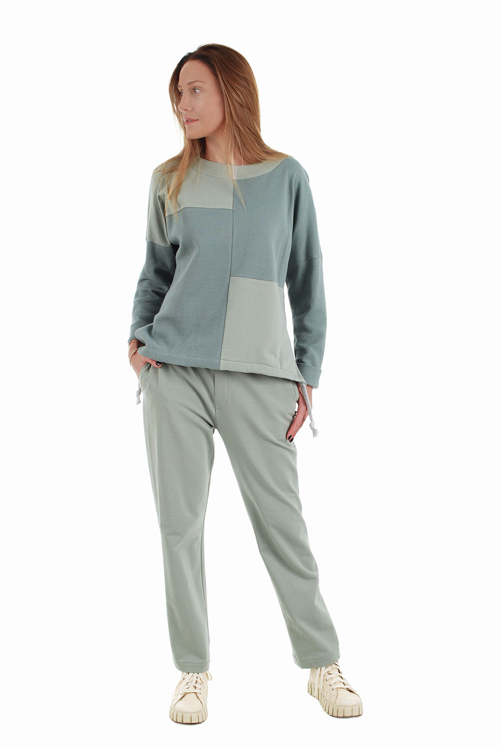 Stilingos laisvalaikio kelnės iš organinės medvilnės su elastanu. Tai ekologiškas medžiagos pasirinkimas. Tamprios, elastingu juosmeniu – nevaržo judesių.