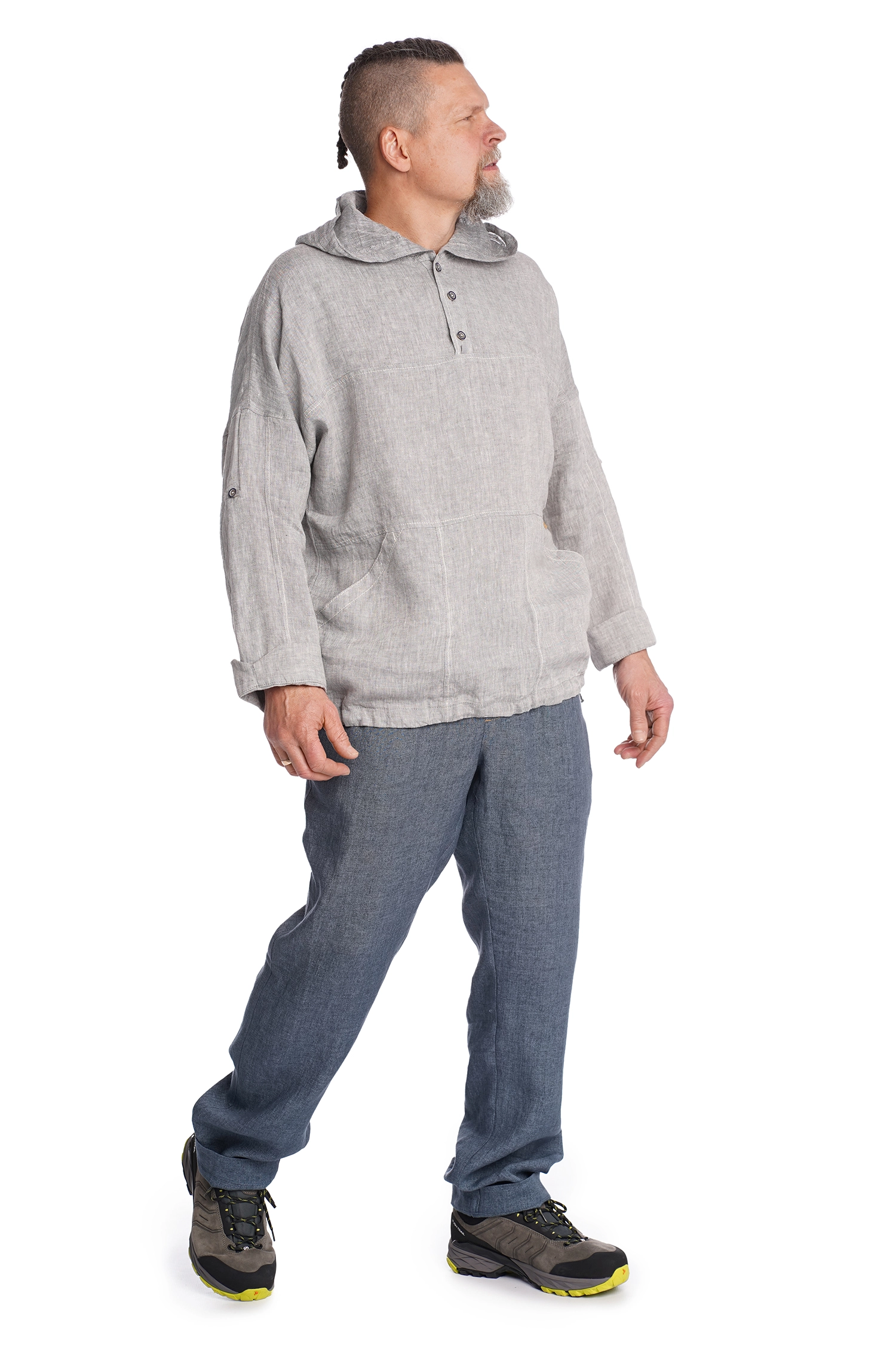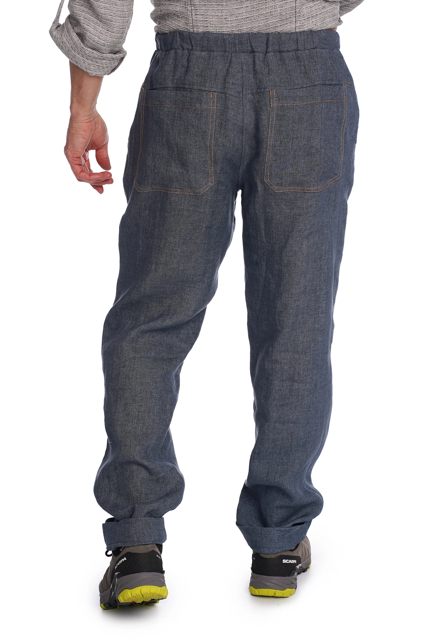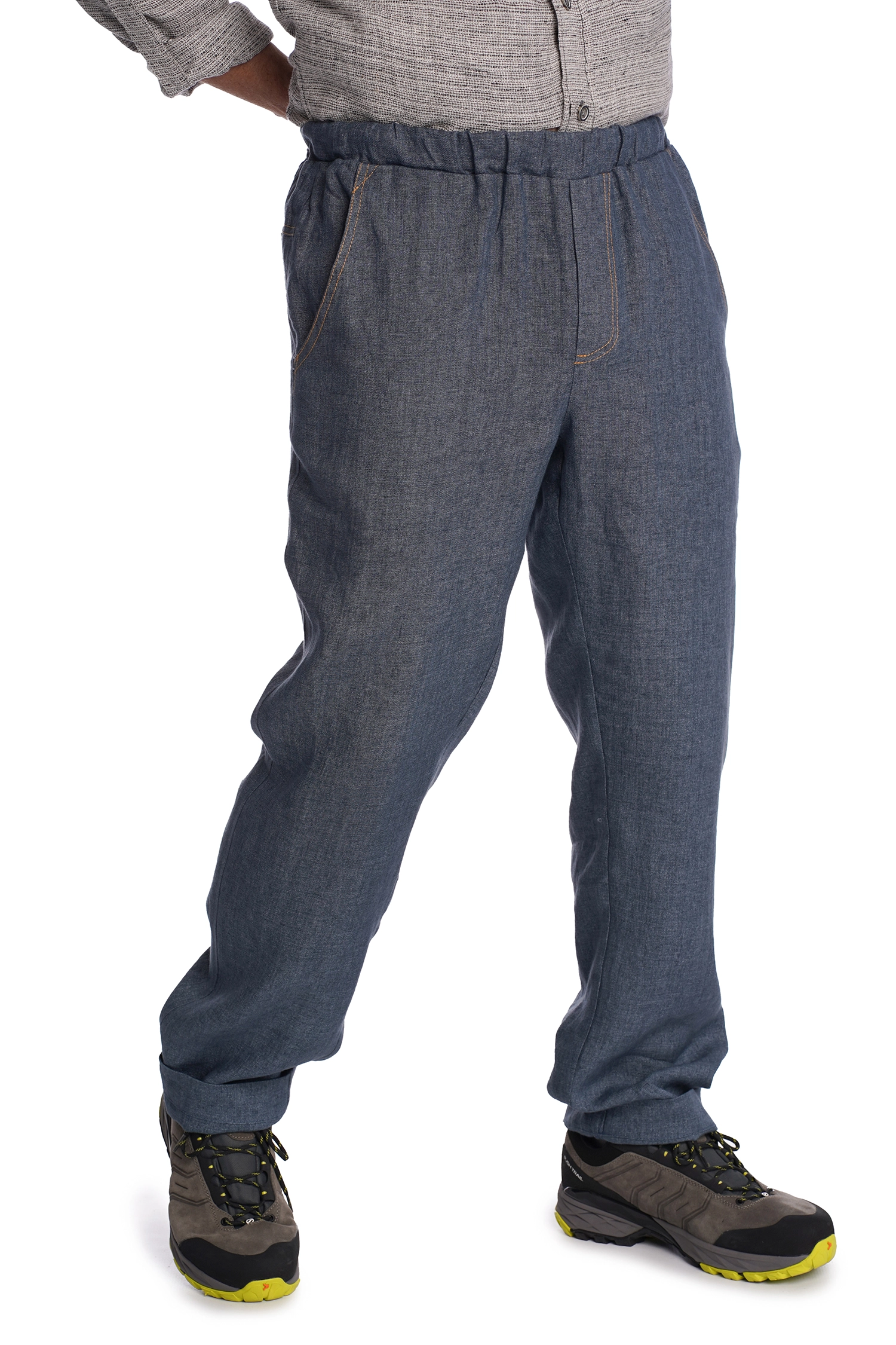 Laisvo stiliaus vyriškos lininės kelnės, idealiai tinkančios kasdieniam dėvėjimui ir laisvalaikiui. Atlanku lengvai reguliuojamas kelnių ilgis. Juosmuo siūtas iš lininio audinio su elastanu ir sutvirtintas rašteliu. Išskalbus nereikia lyginti.
