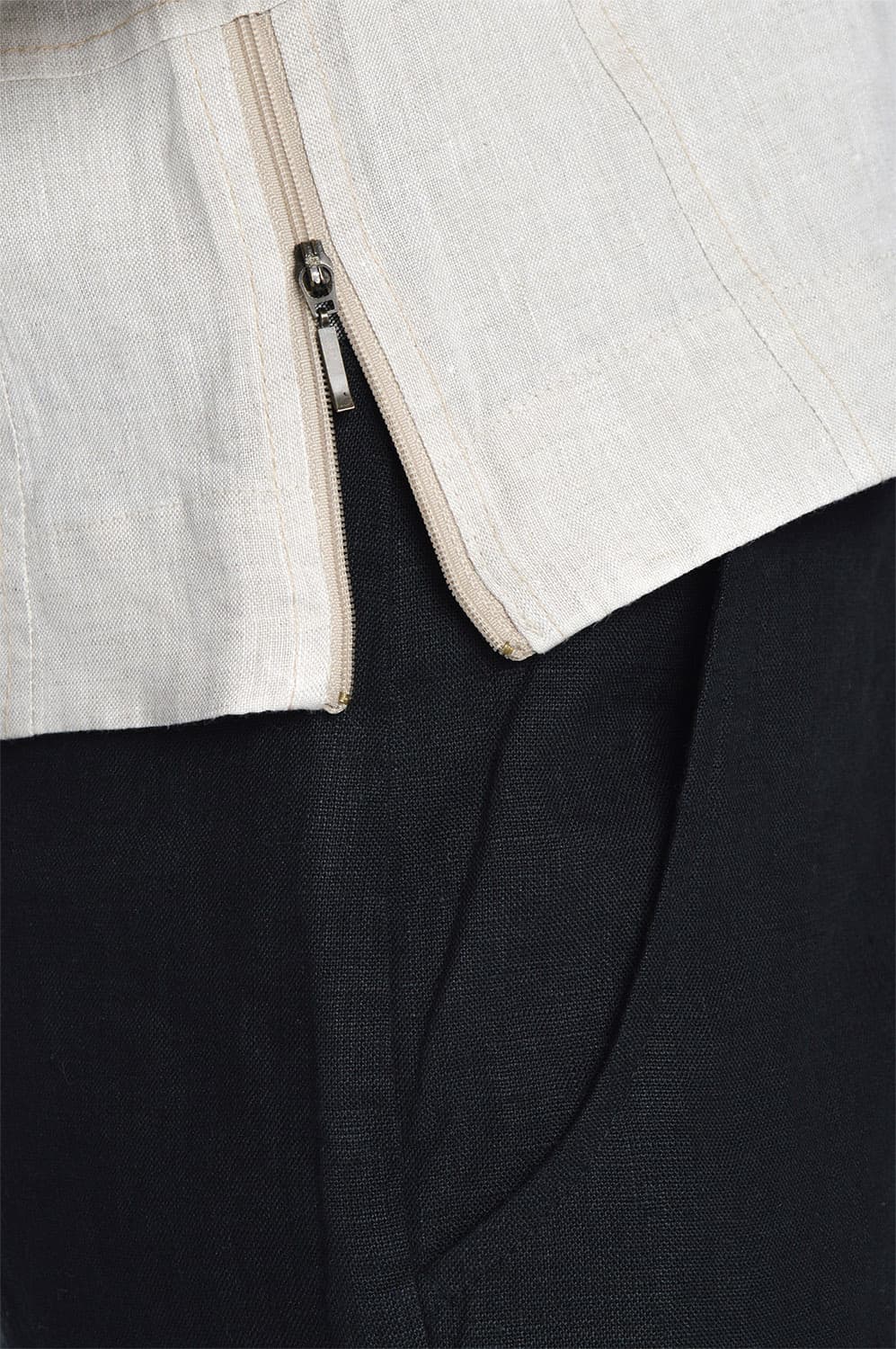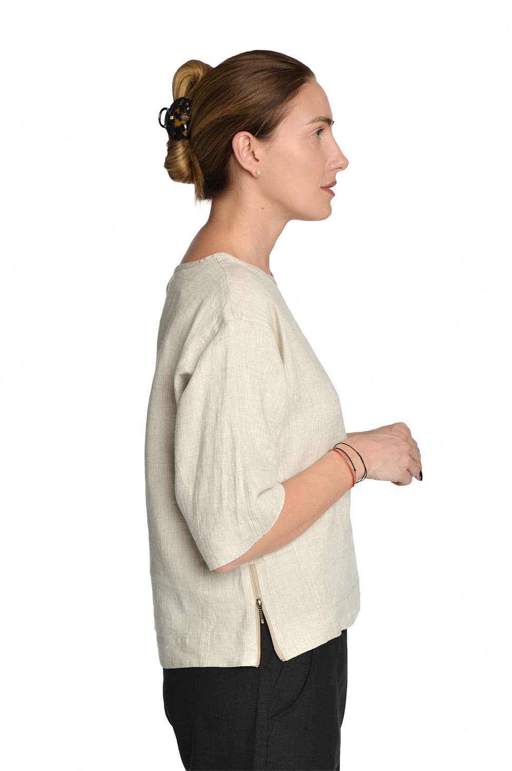 Lininė palaidinė trumpomis rankovėmis su užtrauktukais šonuose, melanžinė