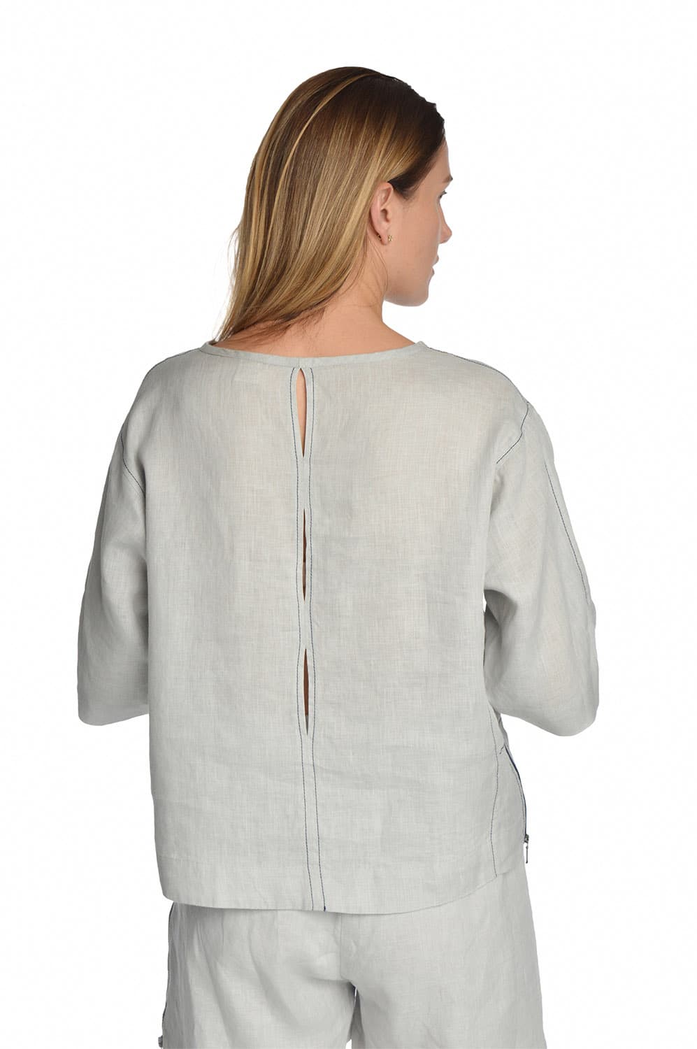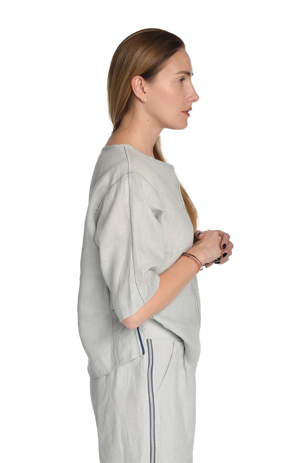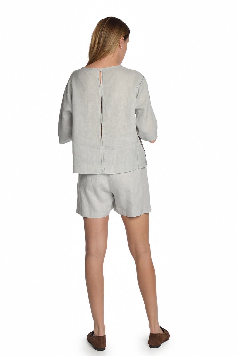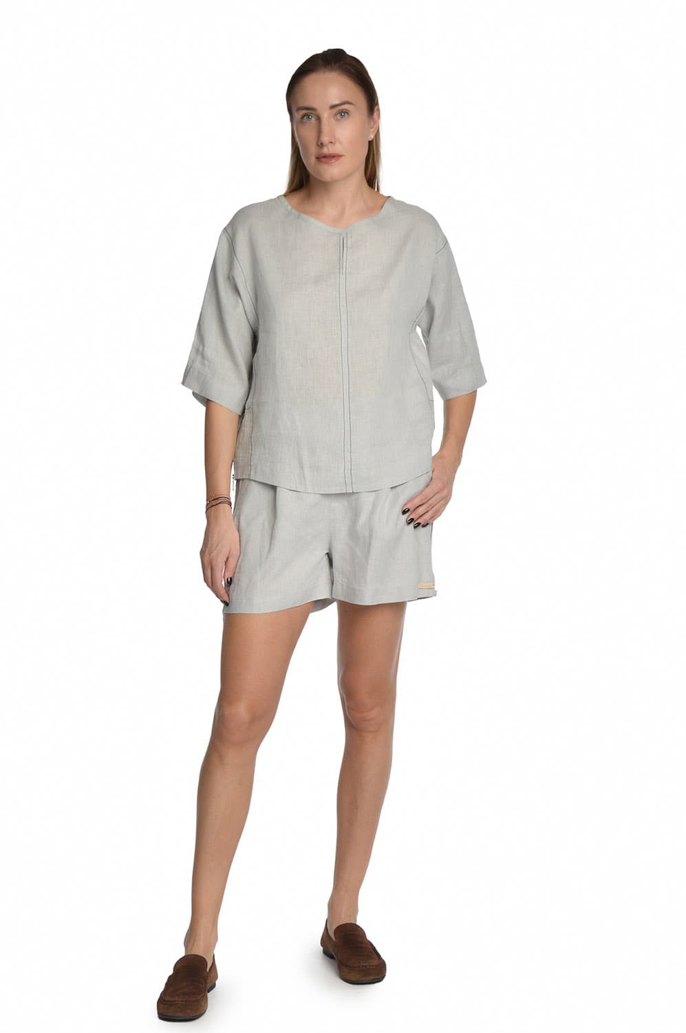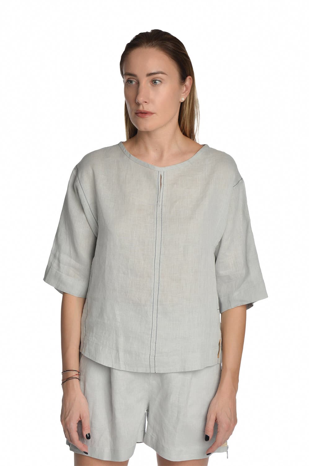 Lininė palaidinė trumpomis rankovėmis su užtrauktukais šonuose, pilka
