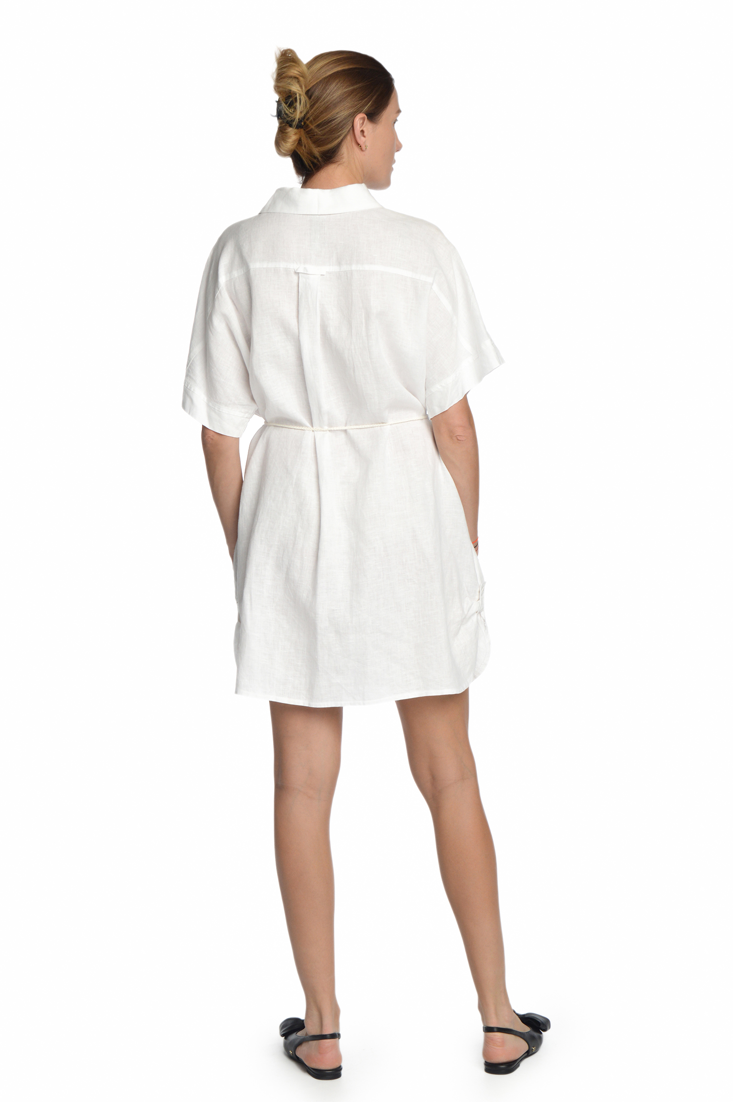 Lininė suknelė – marškiniai, balta