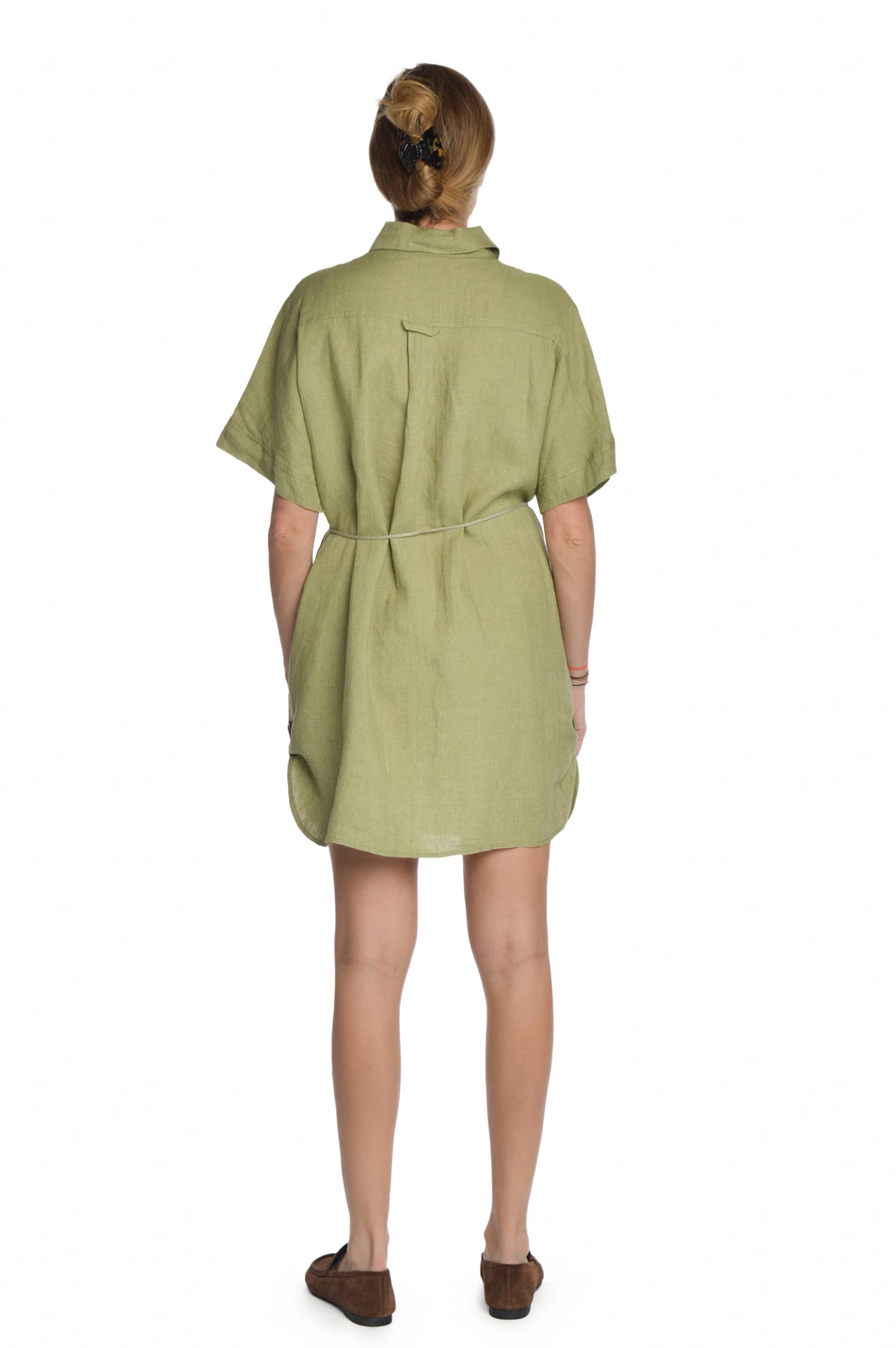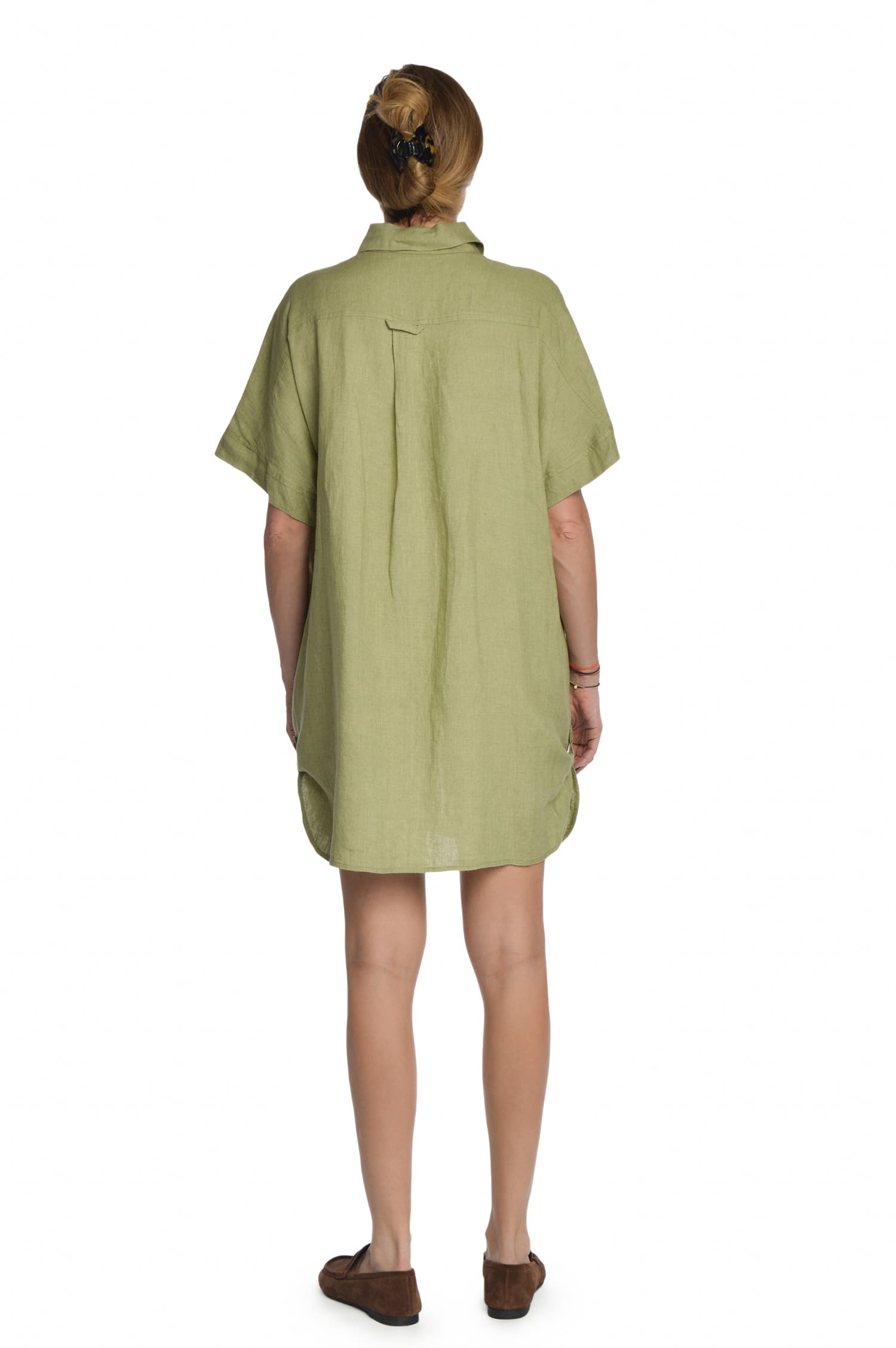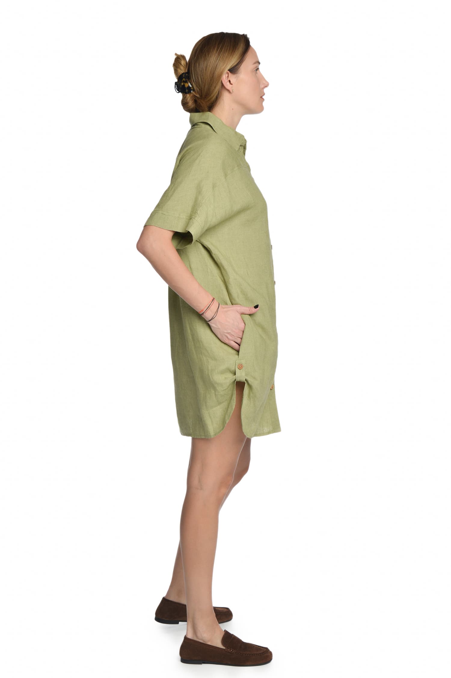 Laisvo silueto, marškinių tipo lininė suknelė, užsagstoma priekyje per visą ilgį. Galima dėvėti vieną arba su šortais, kelnėmis, sijonu. Pridedamas dirželis.