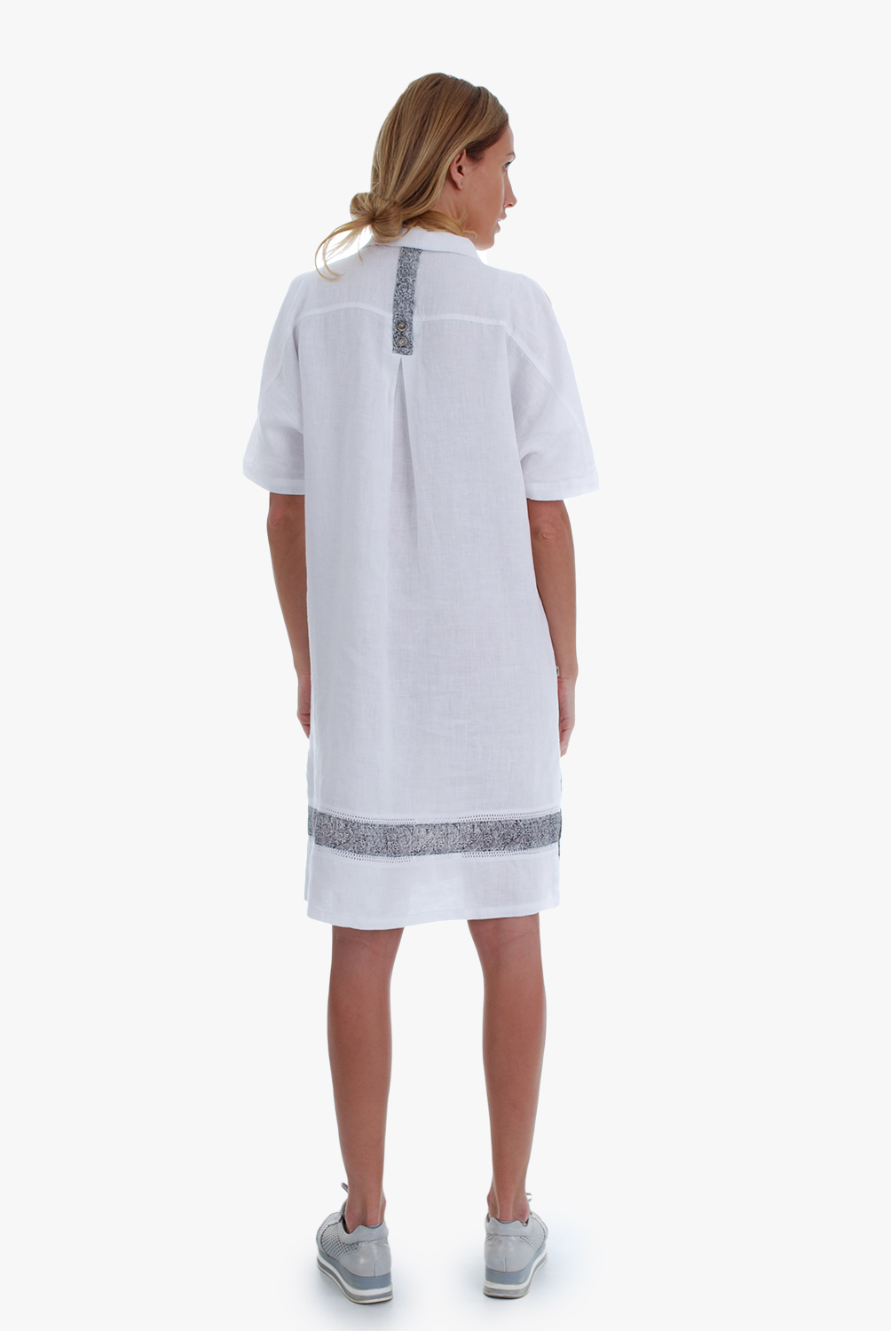 Suknelė-marškiniai puikiai tiks dėvėti su kelnėmis, džinsais ar net tamprėmis. Per visą ilgį užsegamos sagutės tinka maitinančioms mamytėms.
