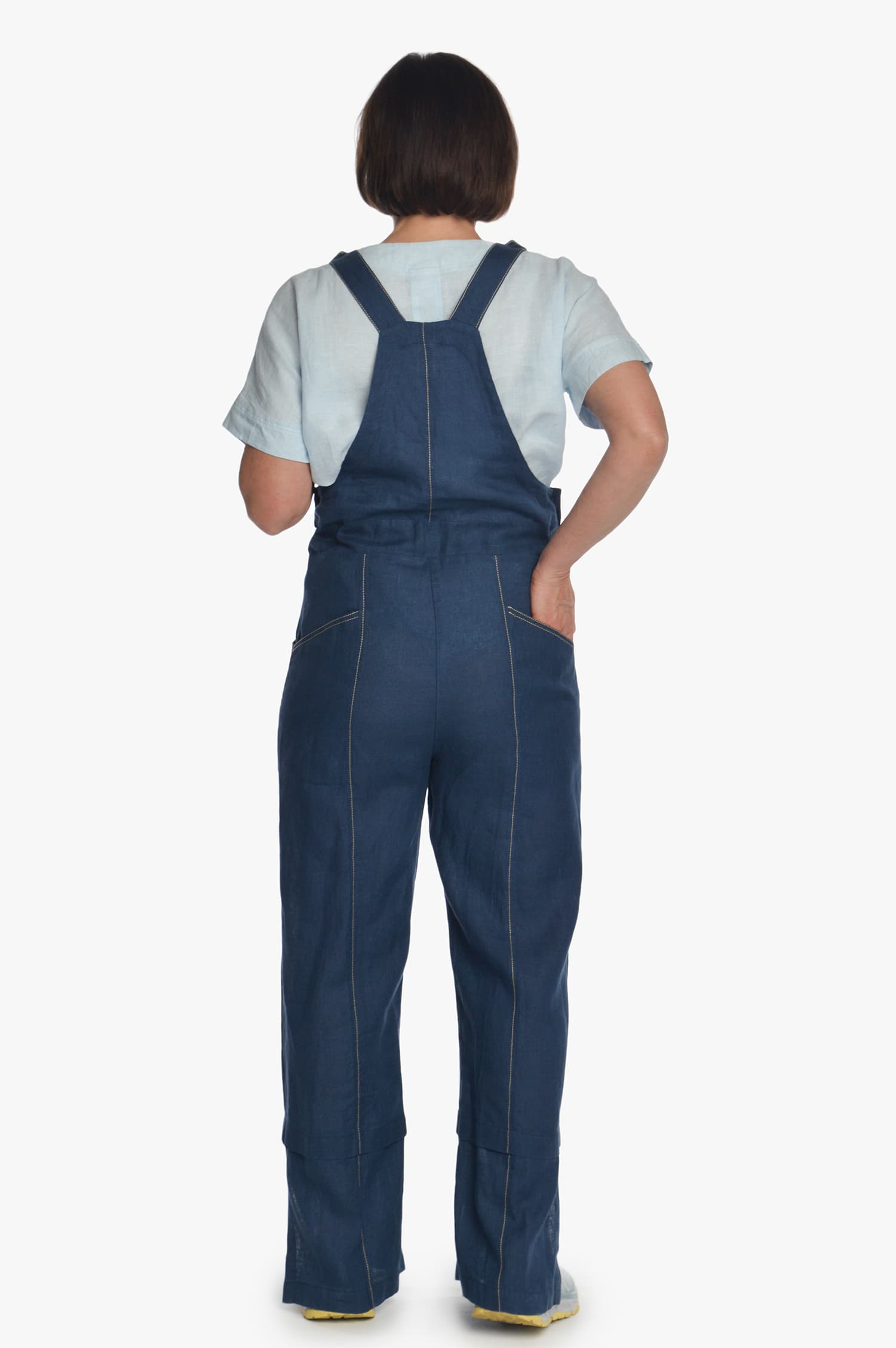 Lininis laisvas kombinezonas, tamsiai mėlynas