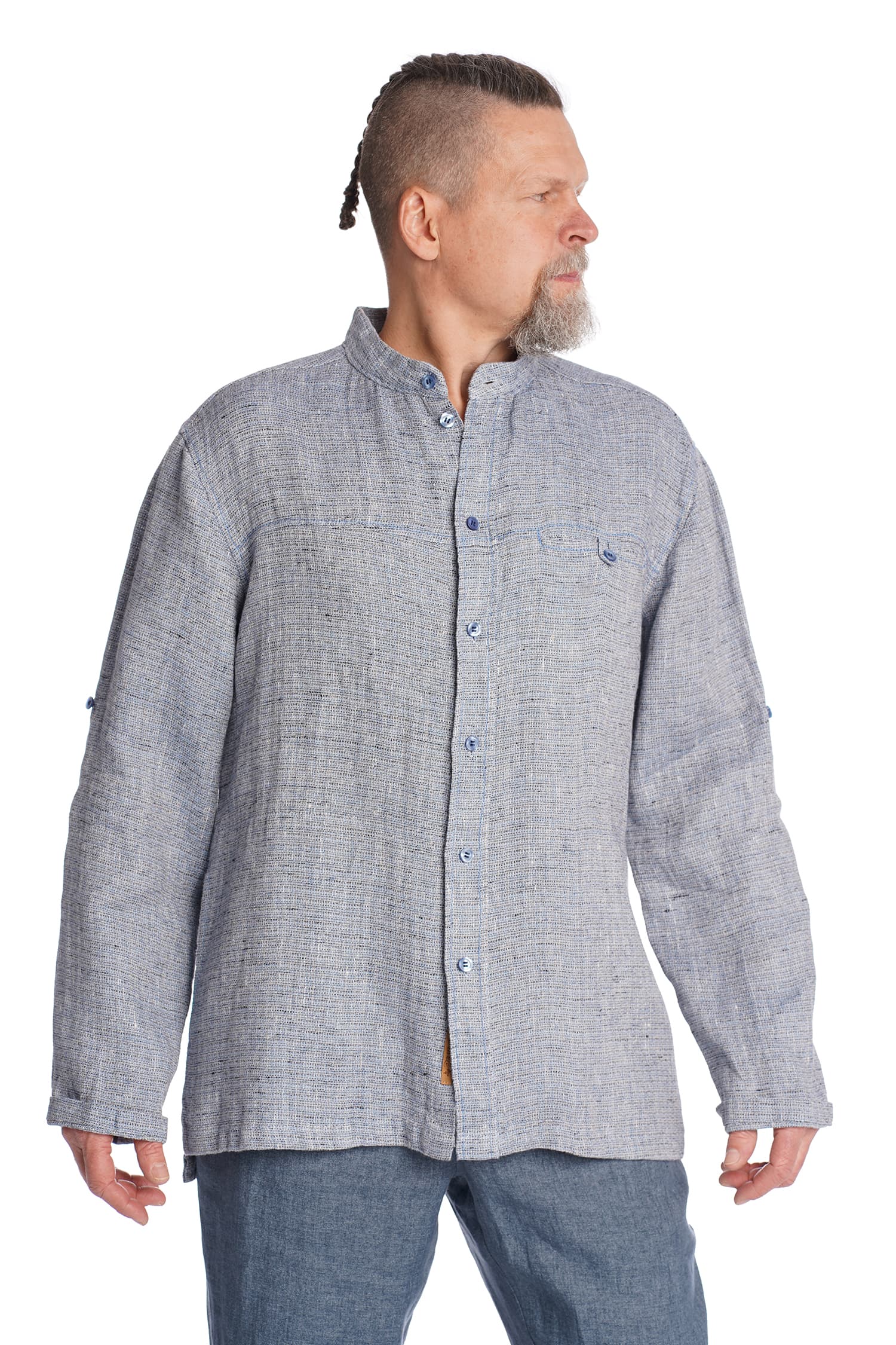 Priekyje susagstomi marškiniai-švarkas, pasiūti iš storesnio lino – puikiai tinka dėvėti vėsiais vasaros vakarais kaip viršutinis drabužis. Lengvai įliemenuotas siluetas. Stilingas akcentas – storo siūlo peltakis. Reguliuojamas rankovių ilgis – galima atraitoti ir užsegti.