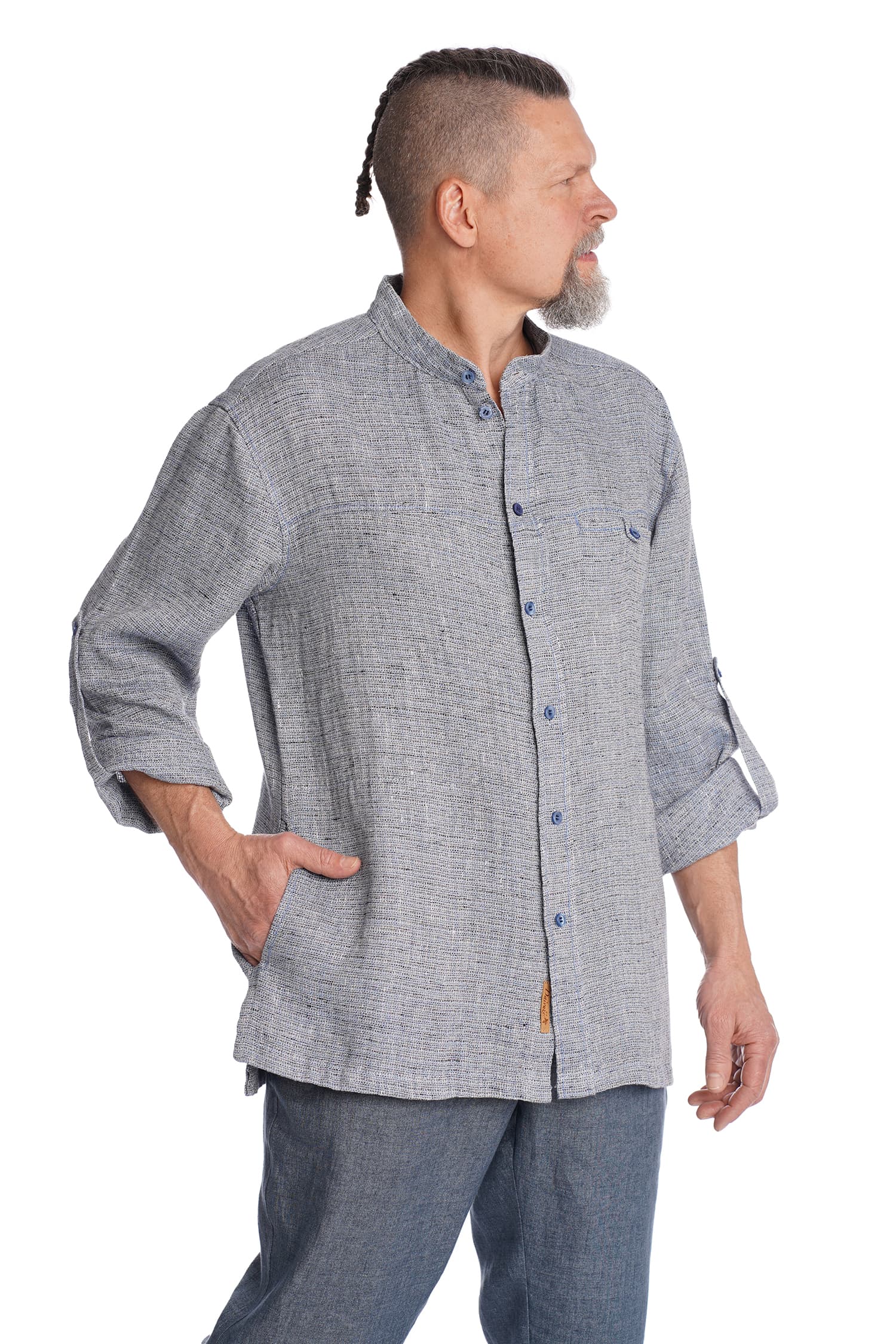 Marškinių tipo vyriškas lininis švarkas, mėlynas