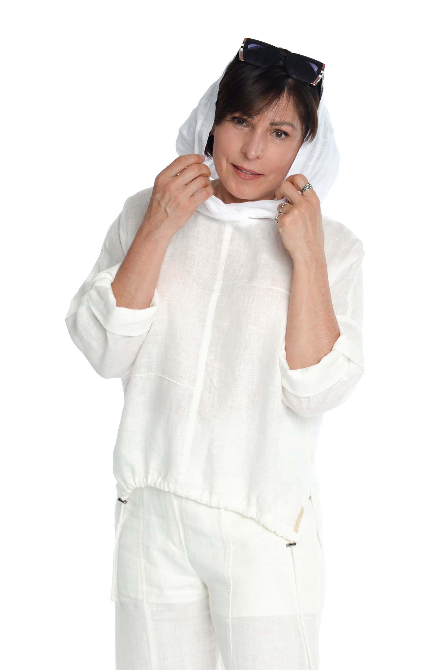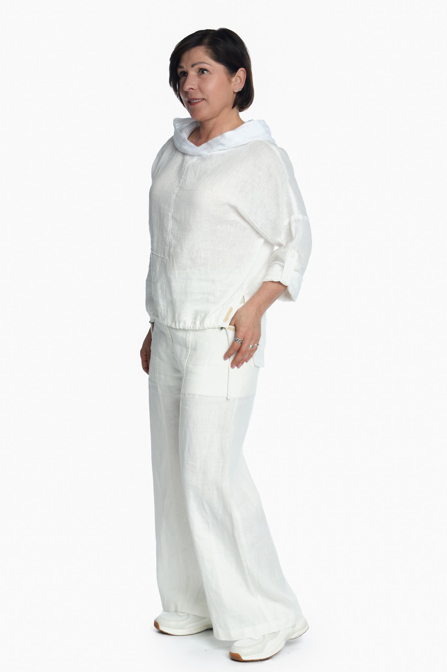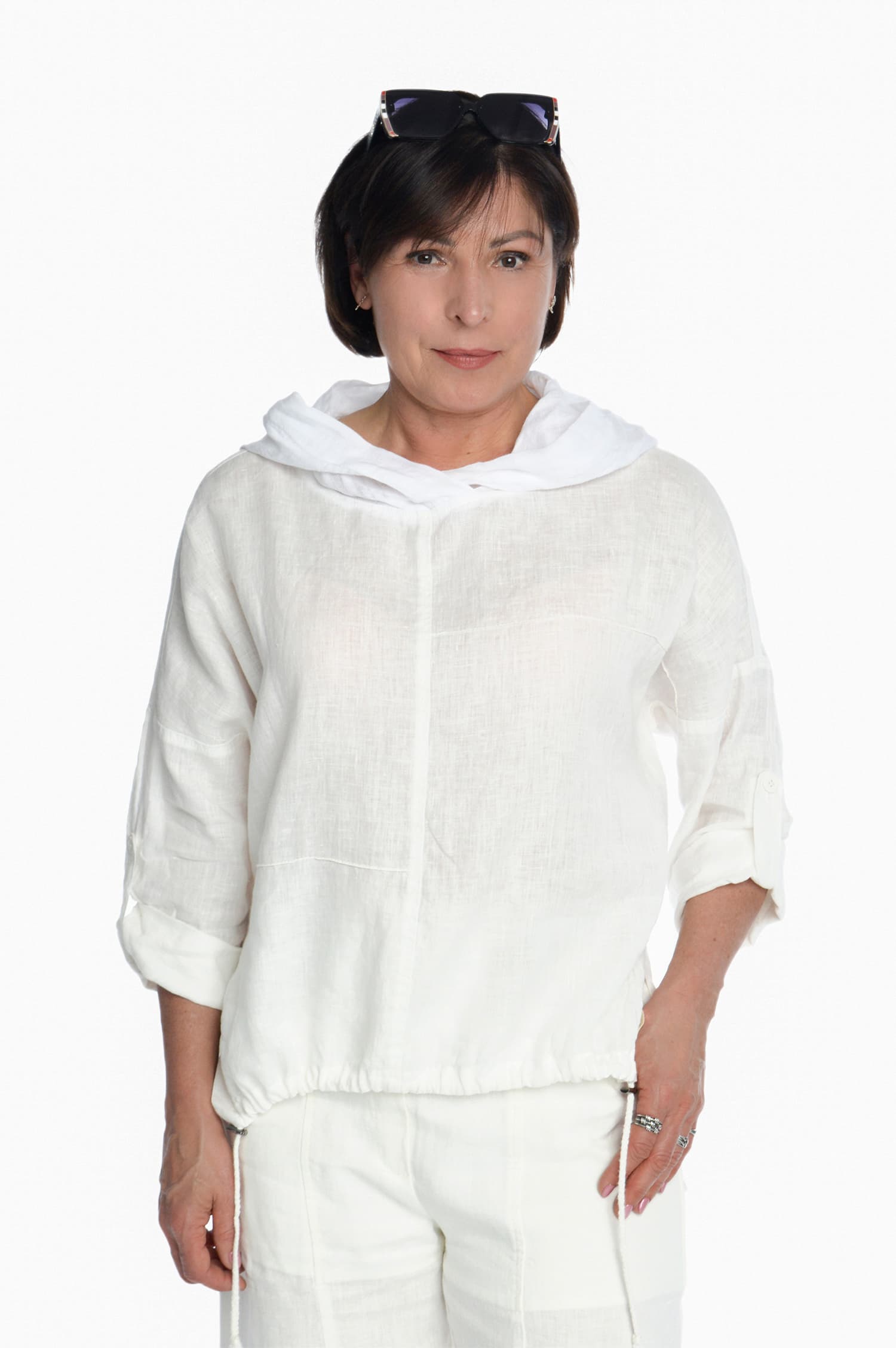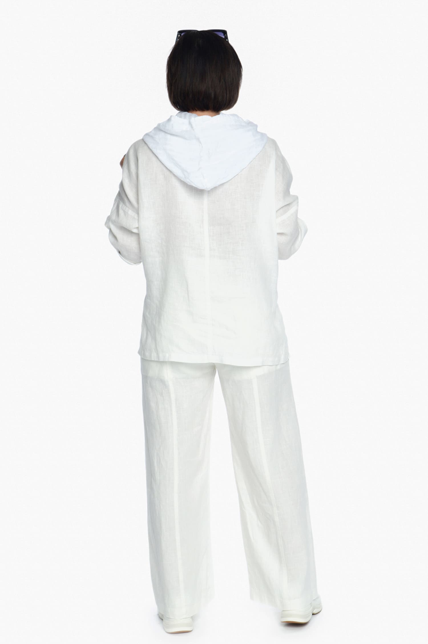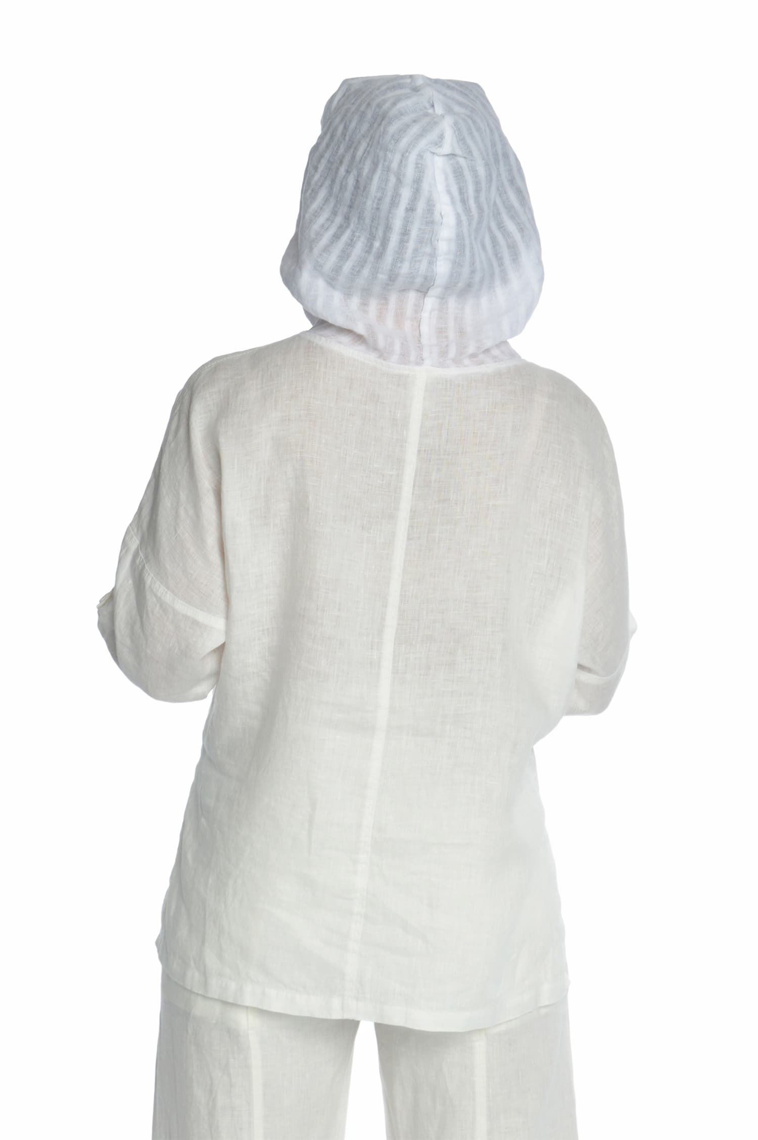 Moteriškas lininis bliuzonas ilgomis rankovėmis, baltas