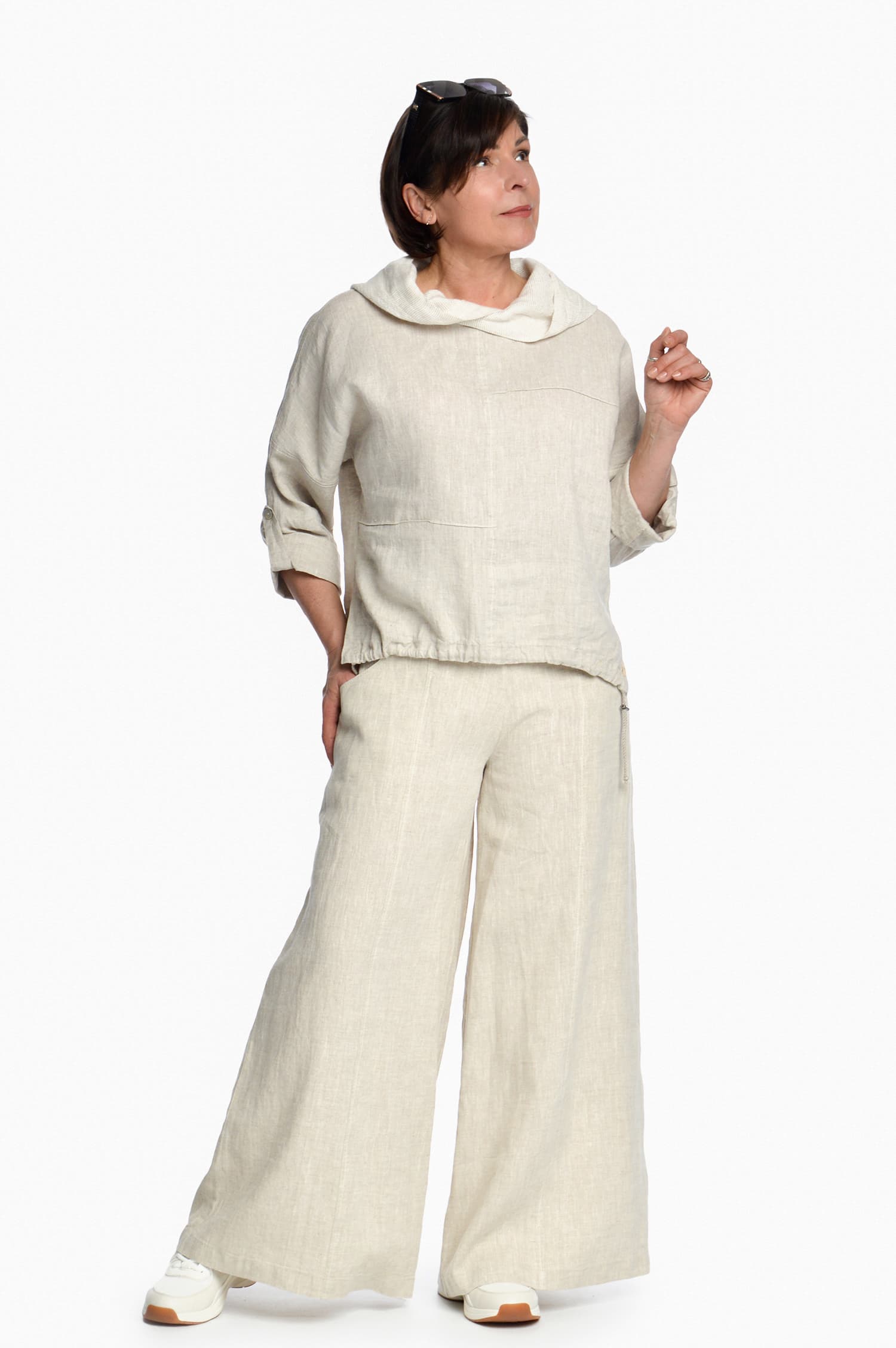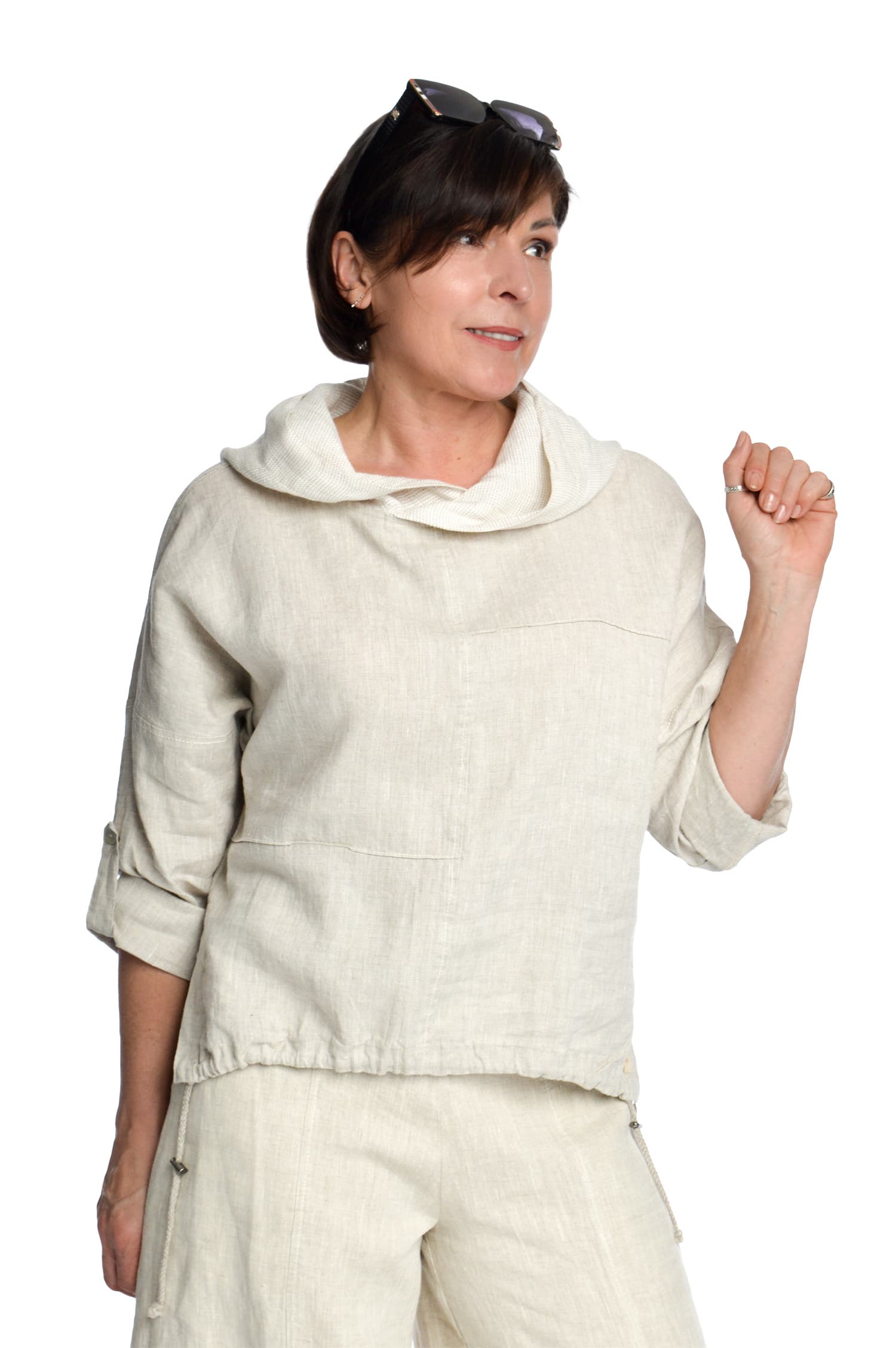 Moteriškas lininis bliuzonas ilgomis rankovėmis, melanžinis