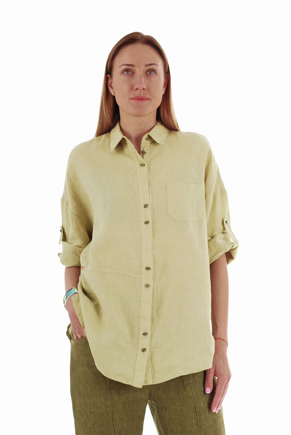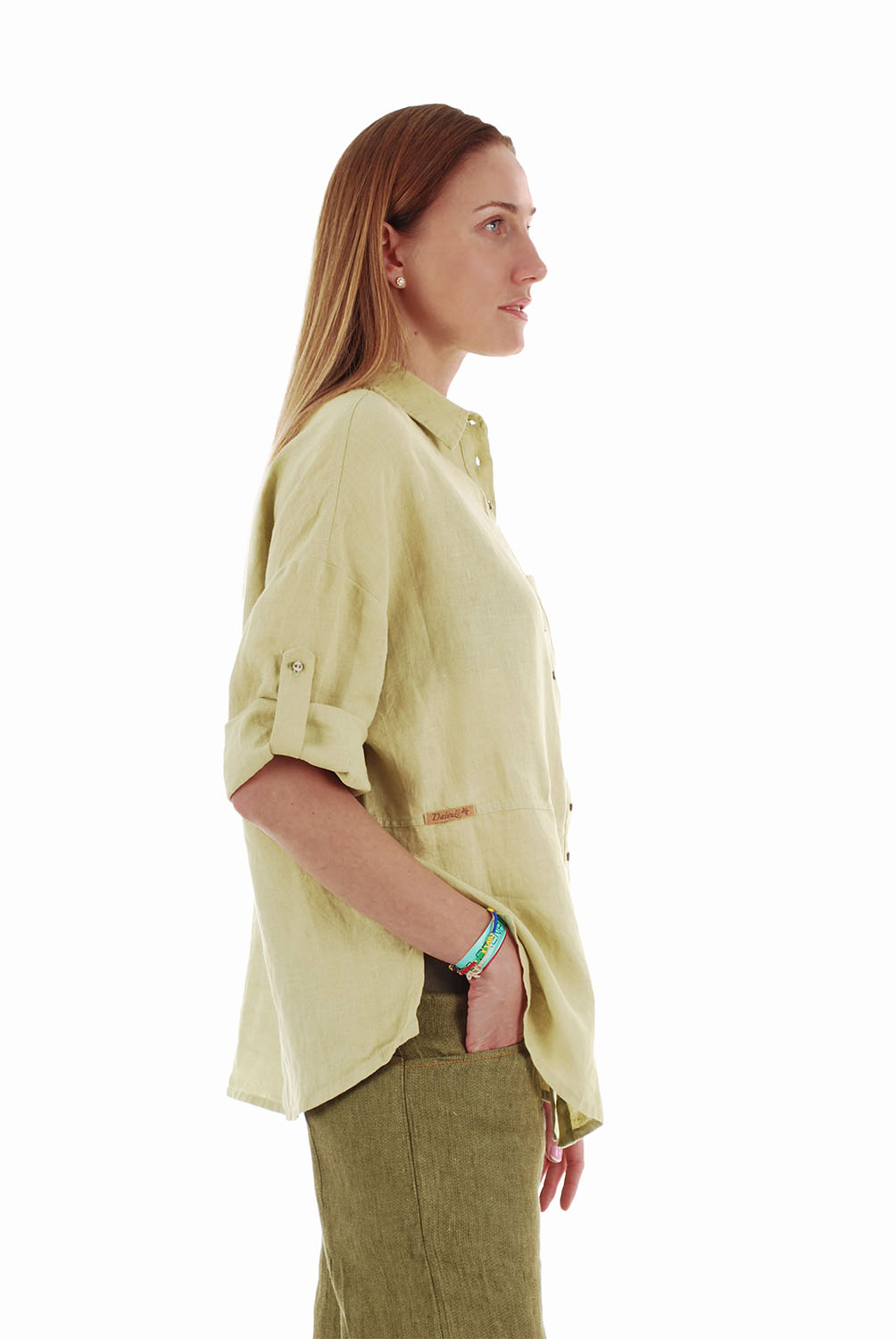 Moteriški lininiai marškiniai pusilgėmis rankovėmis, žalsvi