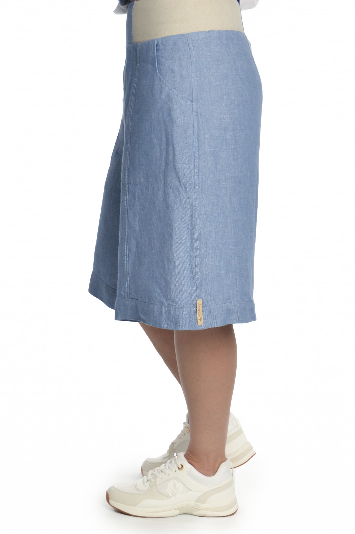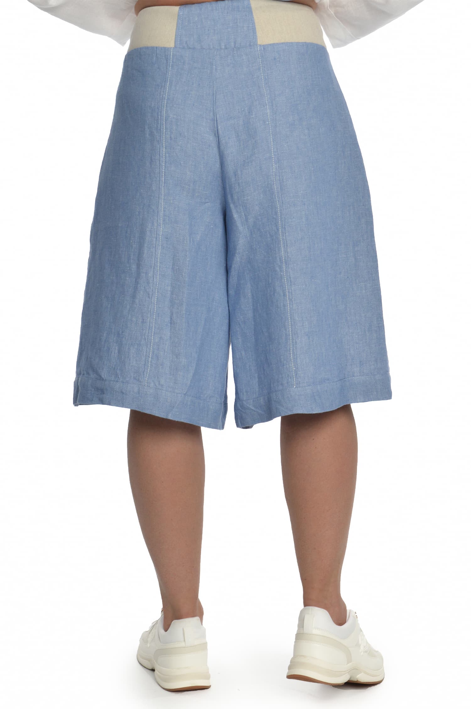 Moteriški lininiai šortai platūs, iki kelių, žydri