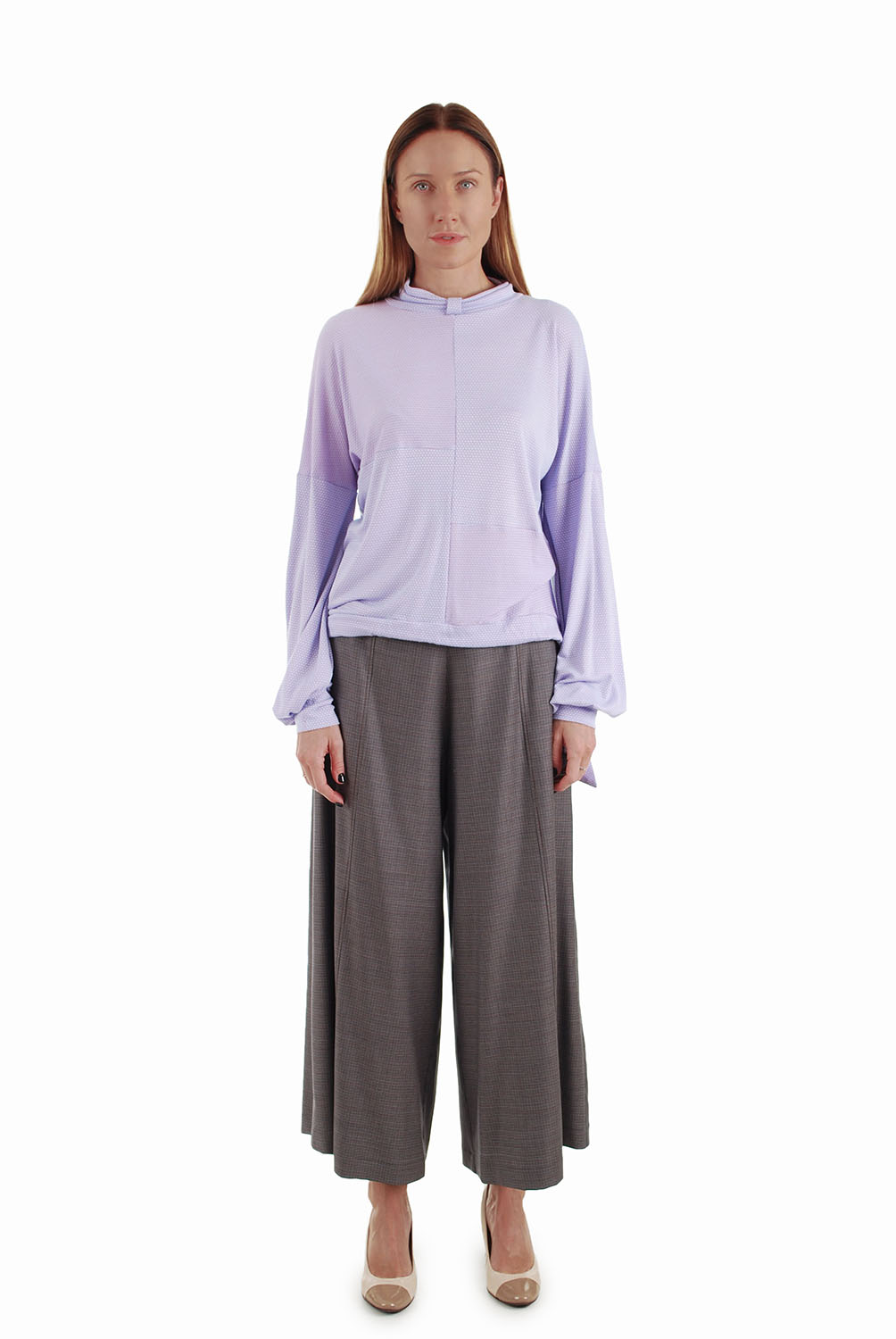 Stilinga palaidinė plačiomis rankovėmis, dekoruota ties kaklu. Lengvo, tampraus viskozės audinio. Puikiai tinka dėvėti prie kelnių, šortų ar sijono.