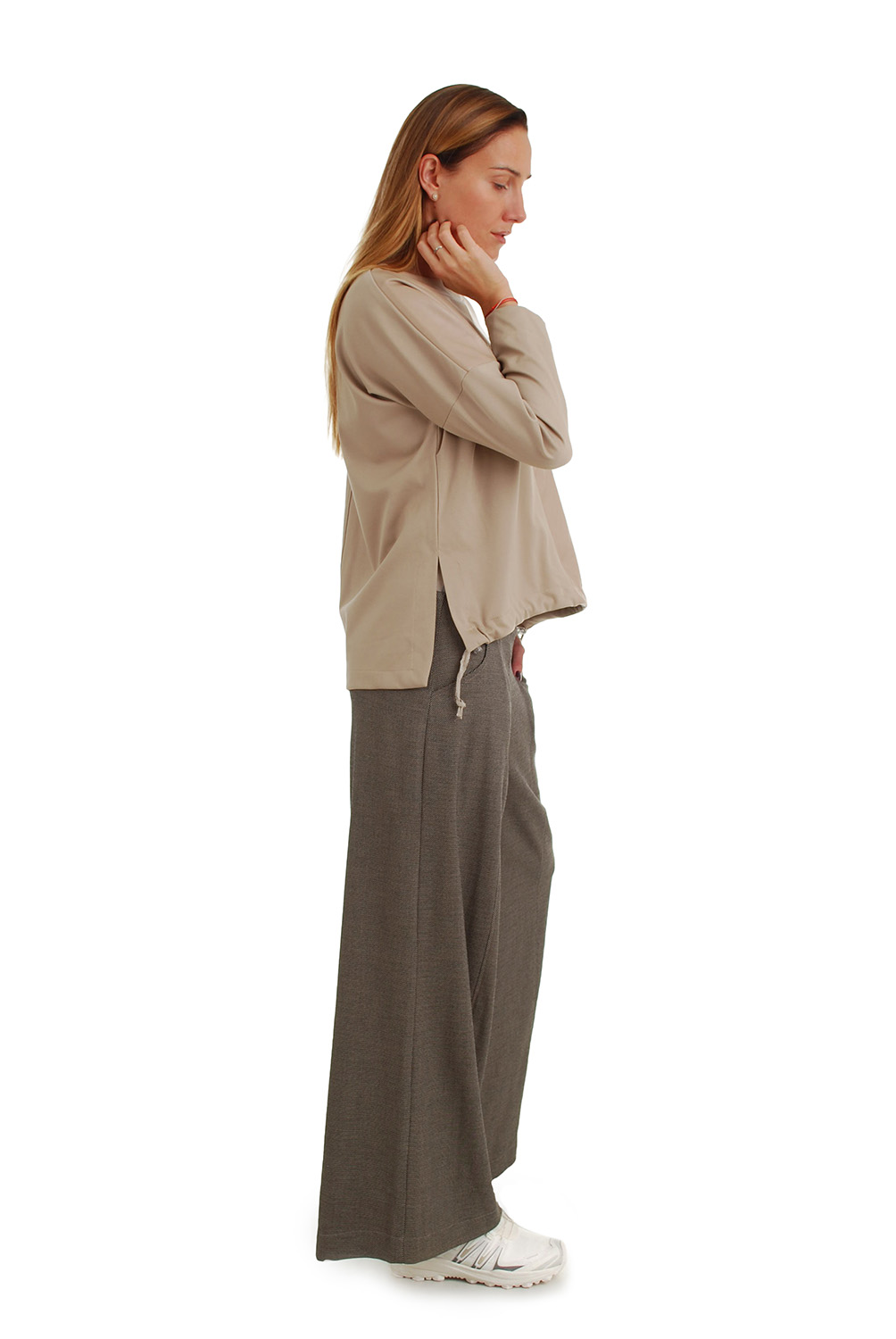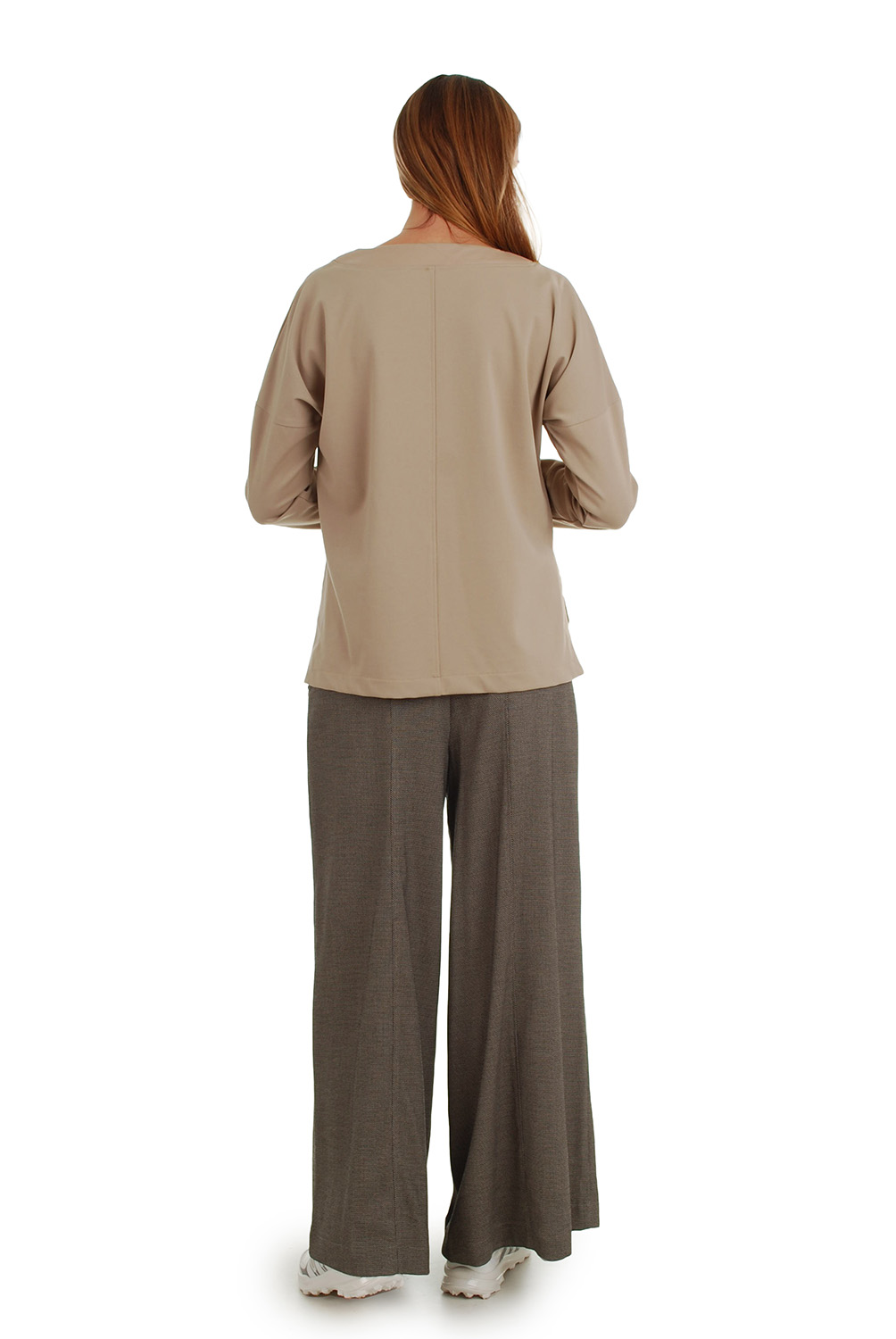 Plačios sijonkelnės, atrodančios tarsi sijonas. Medžiaga lengvai krenta, nevaržo judesių. Juosmuo su elastanu prisitaiko prie kūno