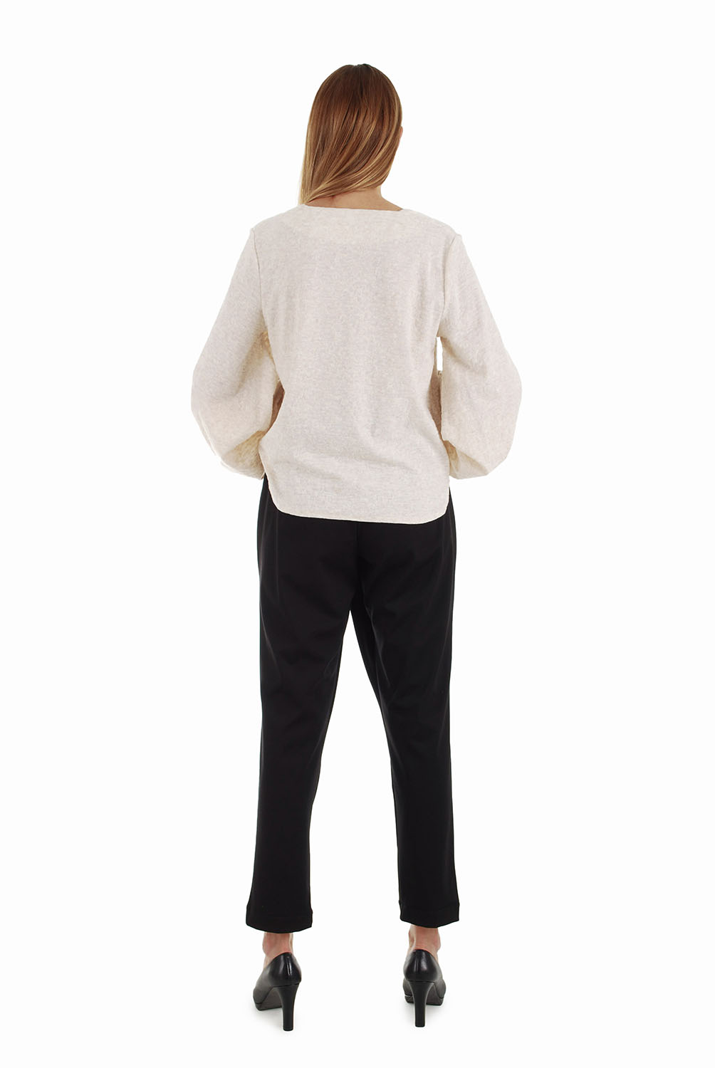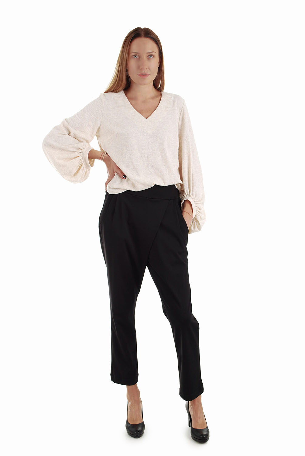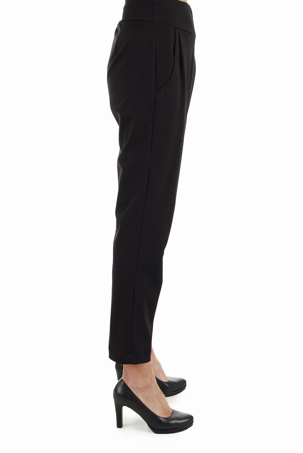 Išskirtinio dizaino kelnės su kloste priekyje. Stilingos moteriškos kelnės iš viskozės, medvilnės ir elastano. Tamprios, nevaržo judesių.