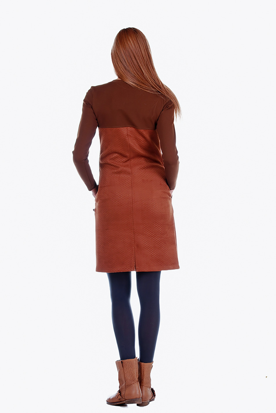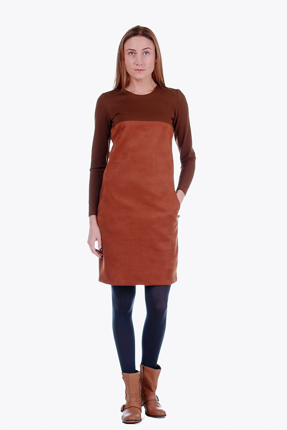 Tiesaus silueto trikotažinė suknelė, ruda