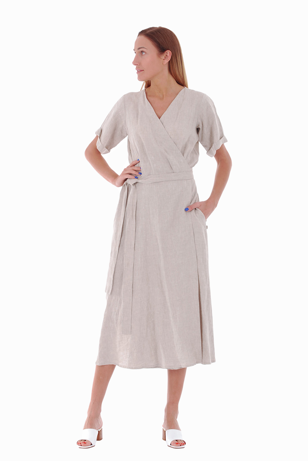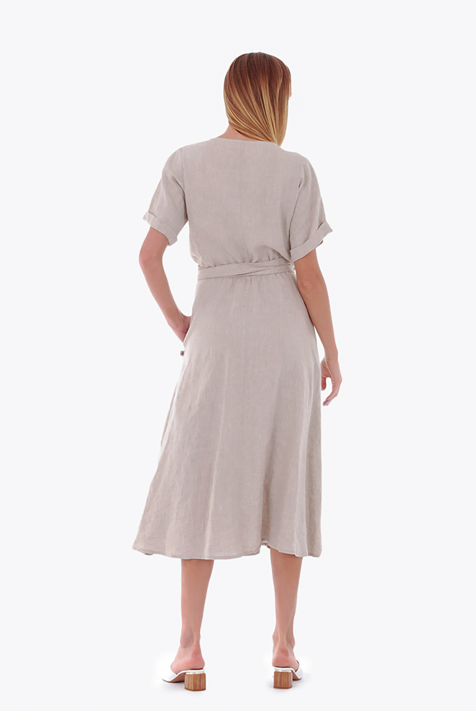 Būkite pirmas aprašęs “Vidutinio ilgio susiaučiama lininė suknelė, šviesi”