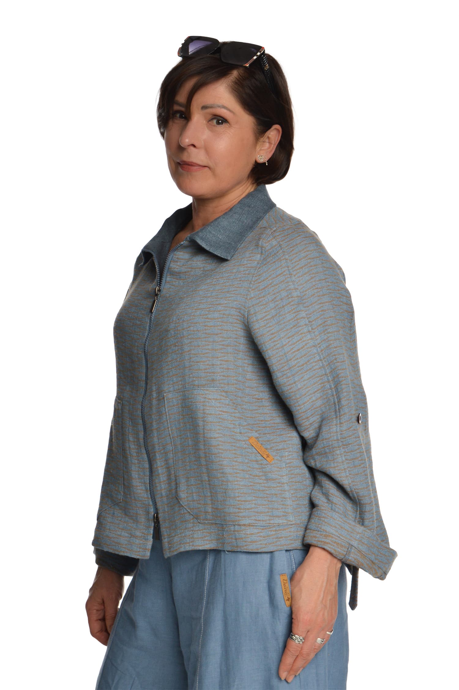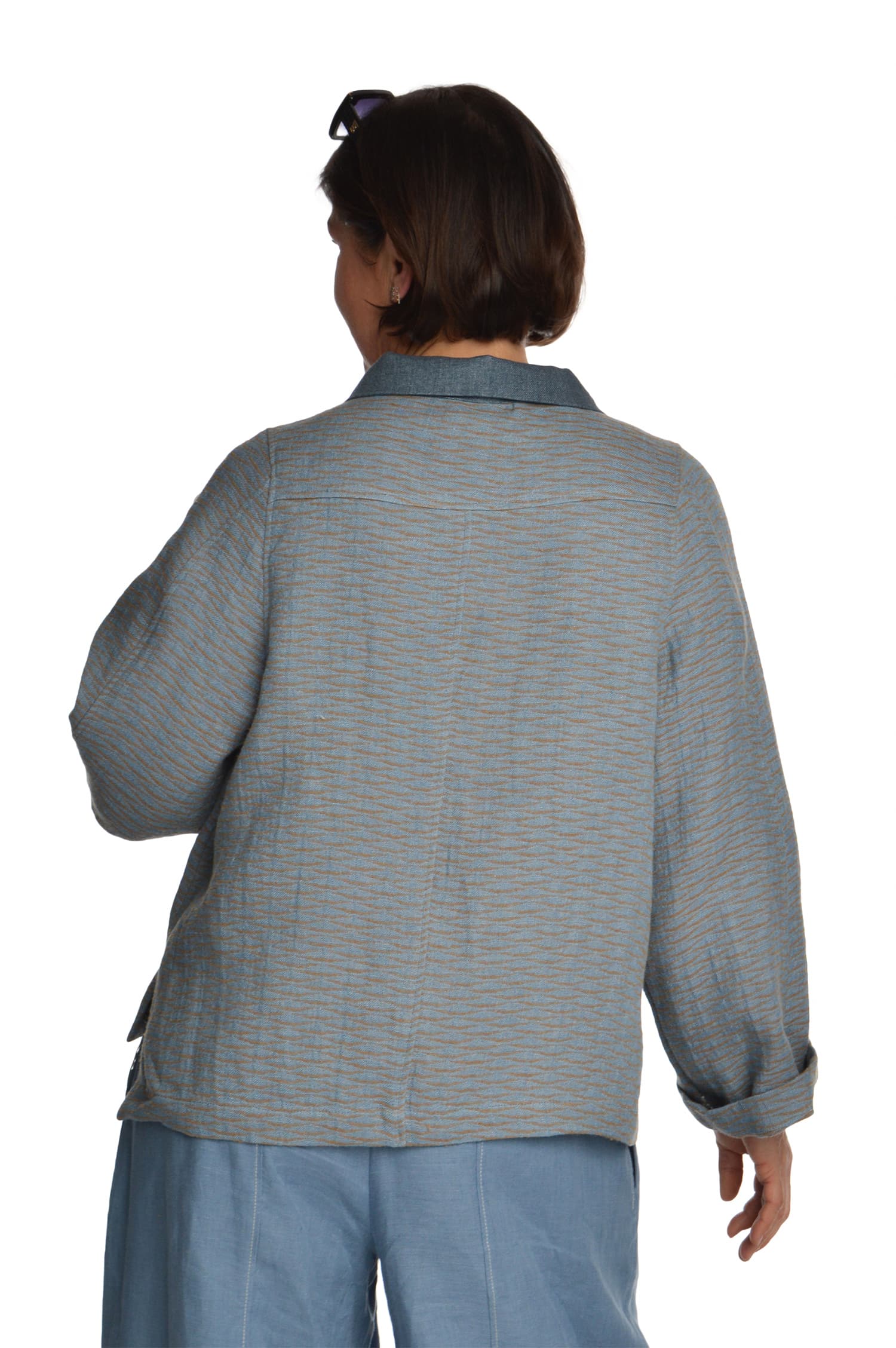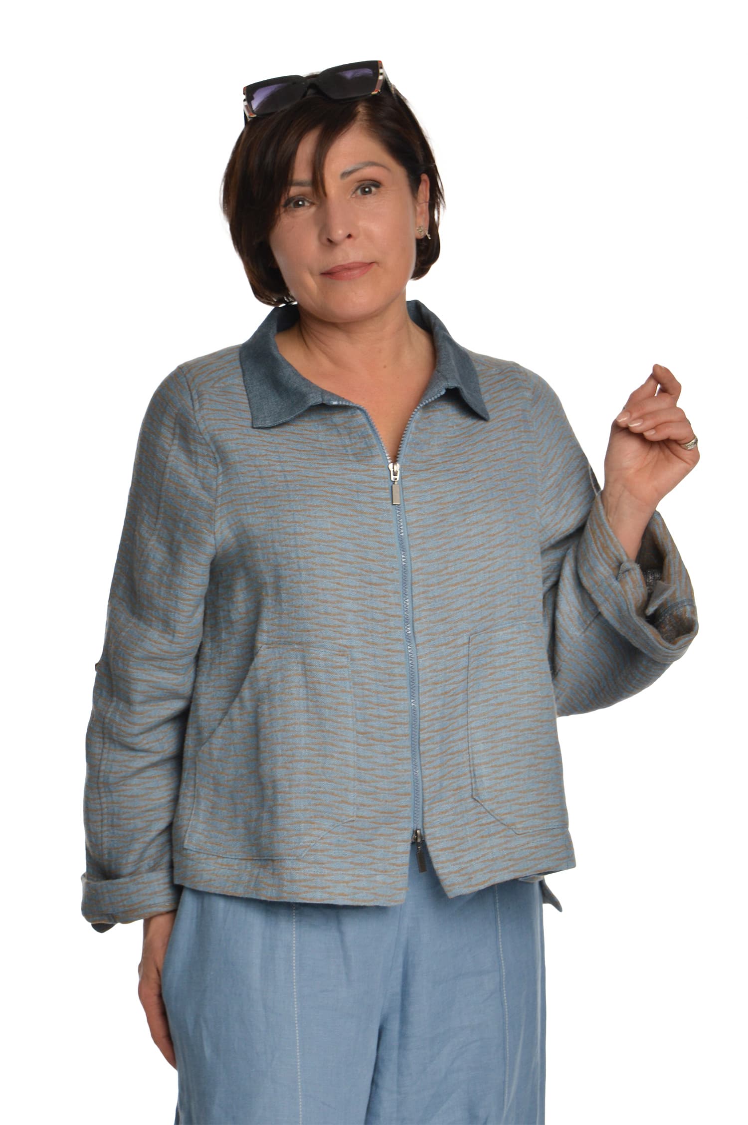 Vilnonis švarkas su linu, užsegamas užtrauktuku, margas