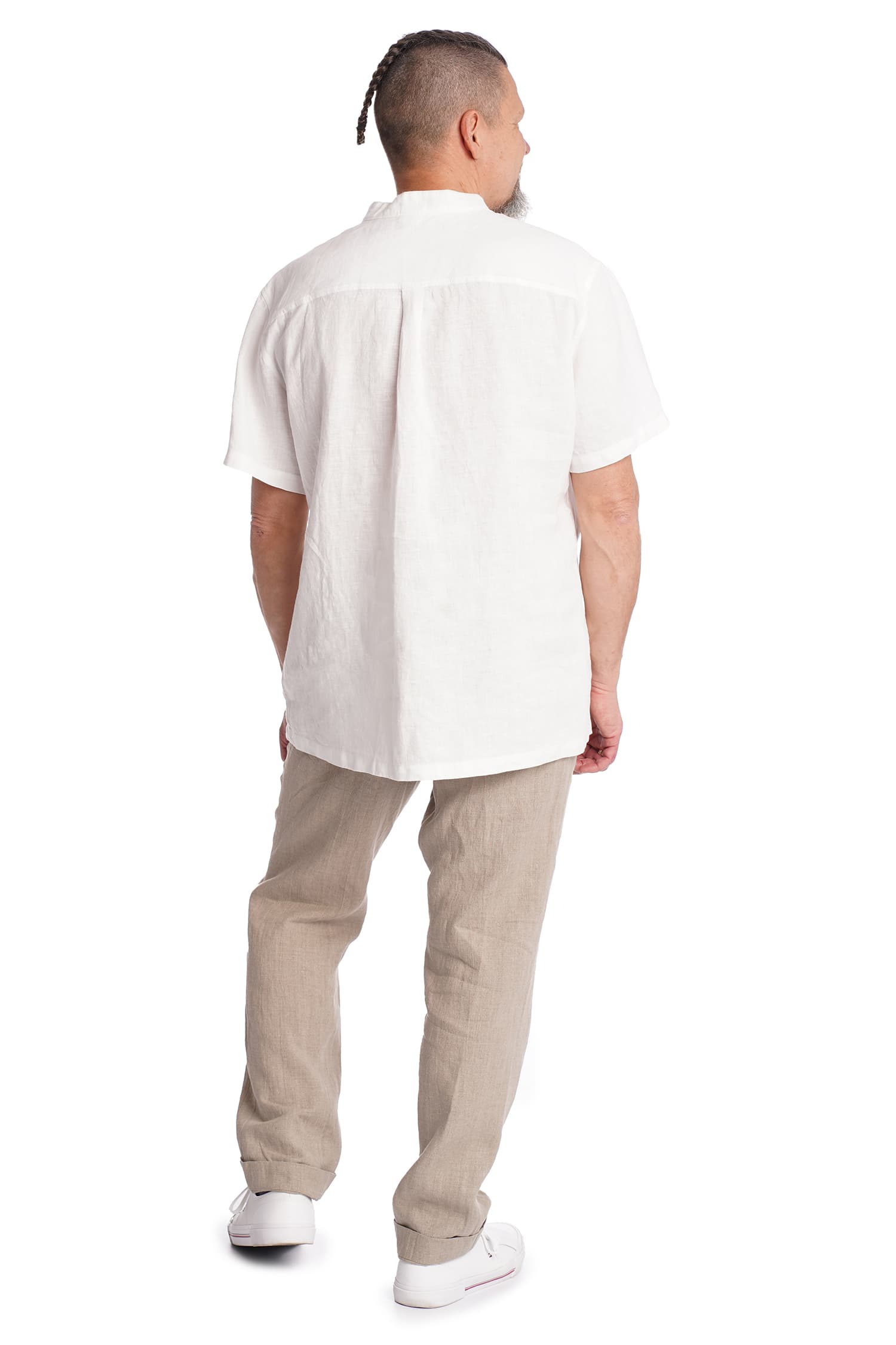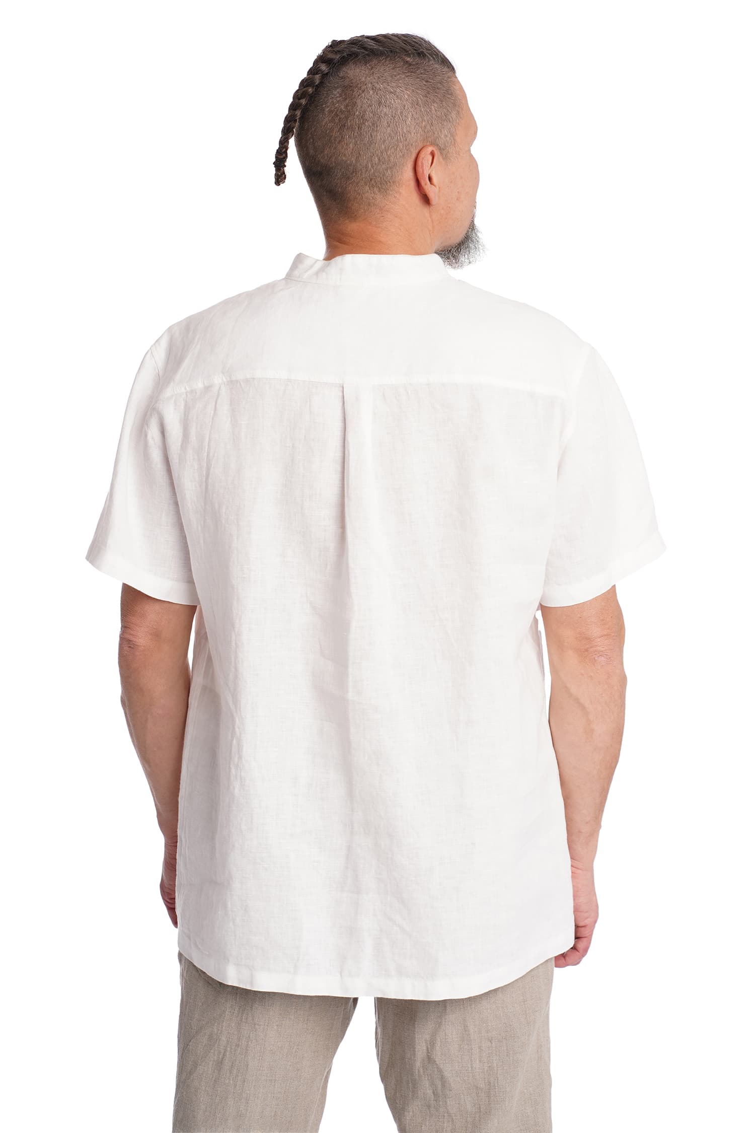 Vyriški plono lino marškiniai trumpomis rankovėmis, balti